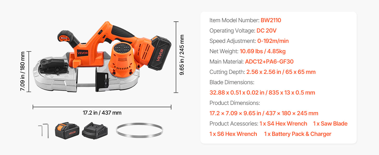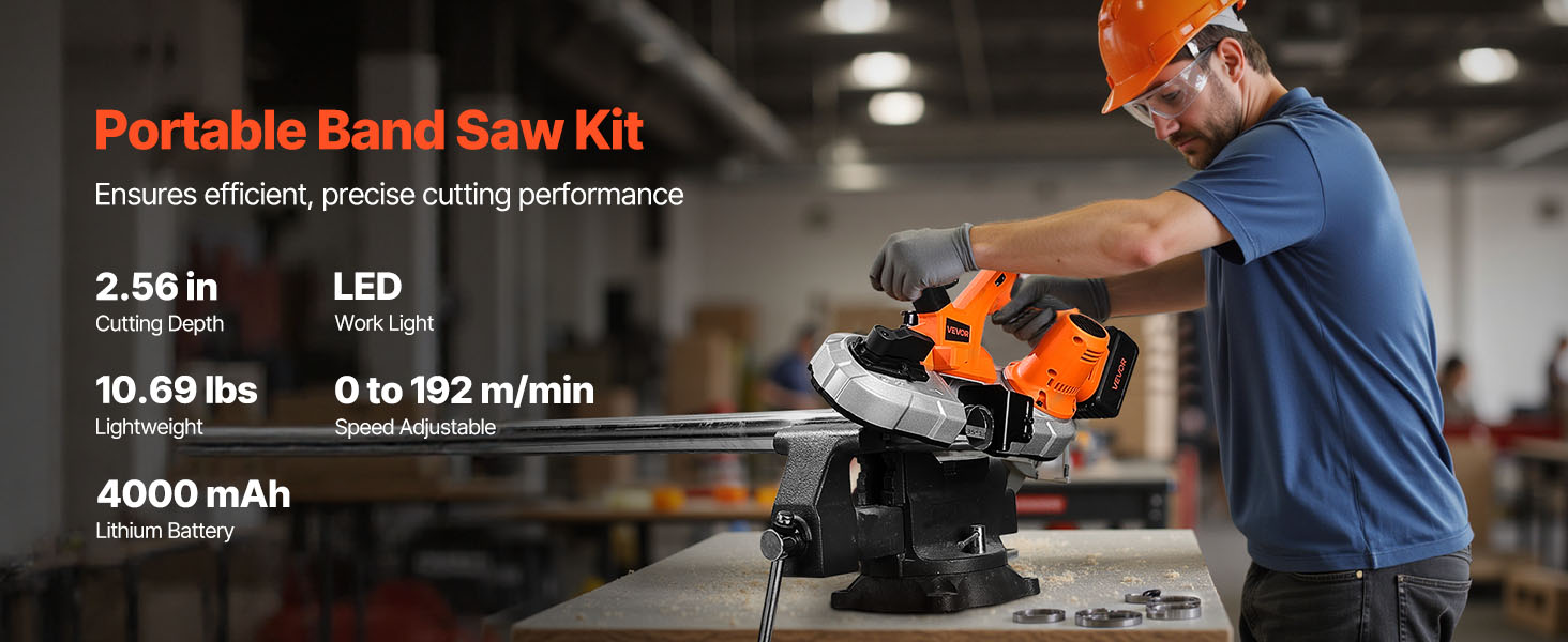 Táto akumulátorová pásová píla je vybavená LED svetlom pre dobrú viditeľnosť pri slabom osvetlení. Vďaka 6 nastaviteľným rýchlostiam sa ľahko prispôsobí rôznym materiálom a potrebám rezania. Ergonomická rukoväť zaručuje pohodlné a stabilné držanie počas dlhšieho používania.