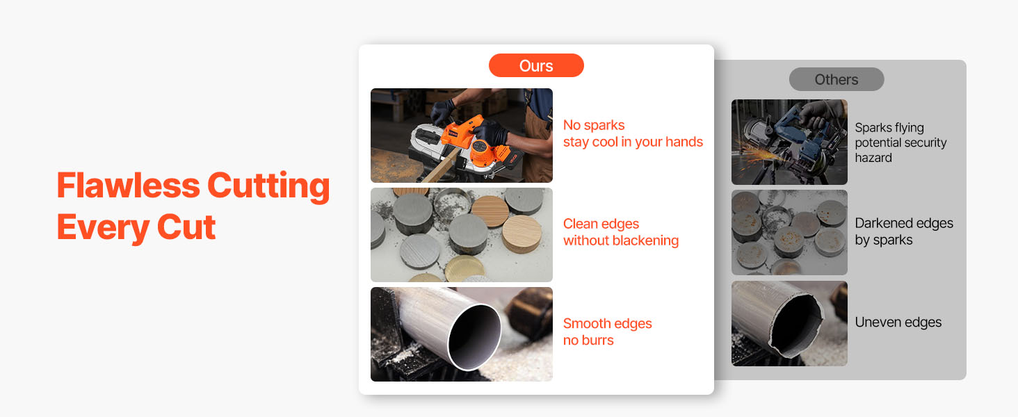 S touto prenosnou pásovou pílou si užijete čisté, hladké rezy bez začiernených hrán, ktoré sú skvelé pre bezpečnú prácu a presné výsledky. Pri precíznej práci vám zakaždým zabezpečí bezchybné výsledky, vďaka čomu budú vaše úlohy rýchlejšie a jednoduchšie s menšou námahou.