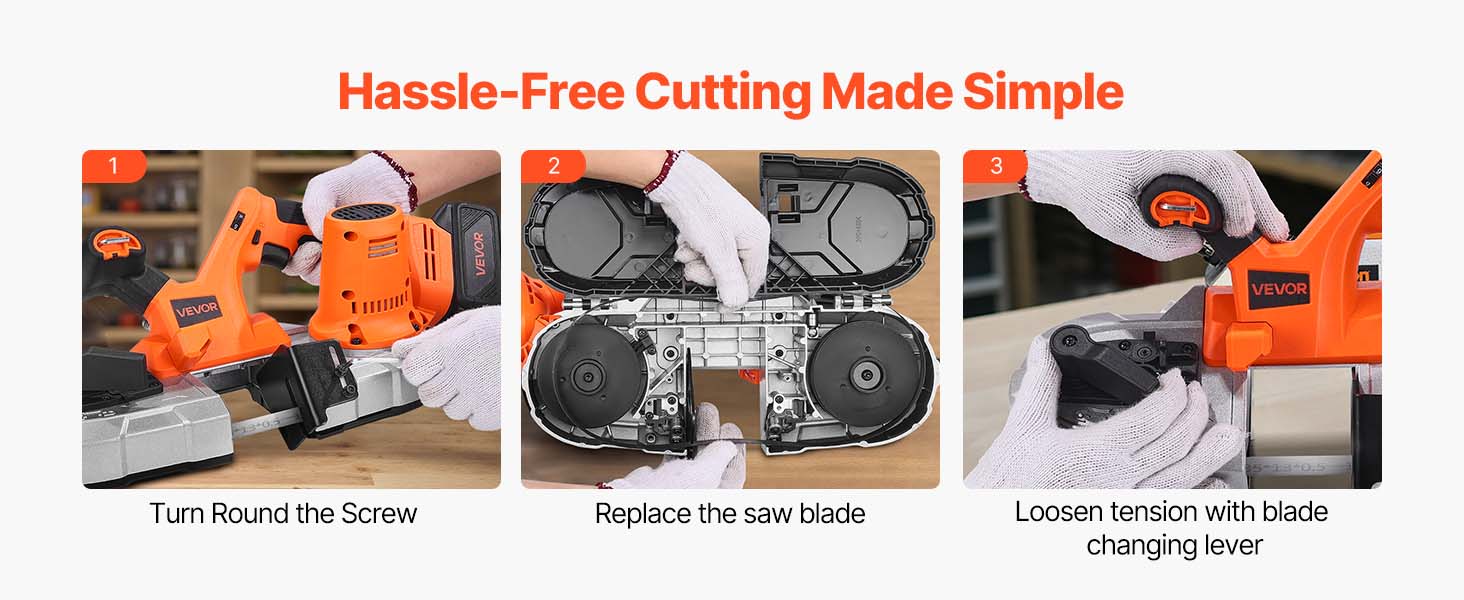 Výmena nožov v priebehu niekoľkých sekúnd. Stačí otočiť skrutku a ste pripravení. Táto prenosná pásová píla sa dodáva s praktickým kľúčom na kotúče, takže nie je potrebné žiadne ďalšie náradie. Rýchla výmena znamená menej prestojov a viac času na rezanie.