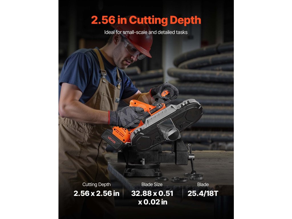 2.56-palcová prenosná pásová píla s hlbokým rezom, batériou a nabíjačkou