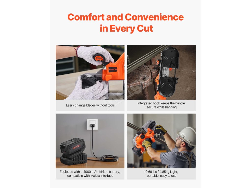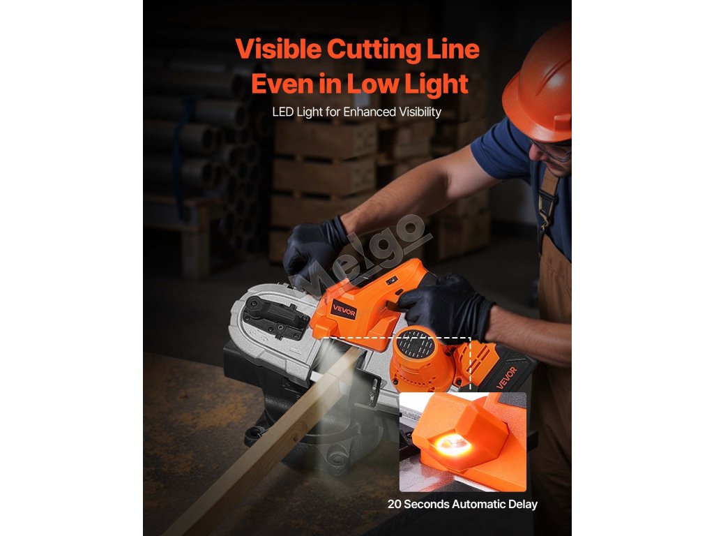 Táto akumulátorová pásová píla je vybavená LED svetlom pre dobrú viditeľnosť pri slabom osvetlení. Vďaka 6 nastaviteľným rýchlostiam sa ľahko prispôsobí rôznym materiálom a potrebám rezania. Ergonomická rukoväť zaručuje pohodlné a stabilné držanie počas dlhšieho používania.