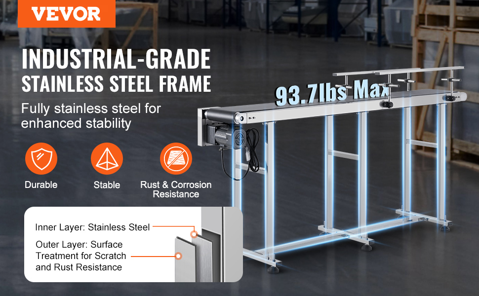 Rozlúčte sa s chatrnými dopravníkmi! Náš pásový dopravník sa môže pochváliť pevnou konštrukciou z nehrdzavejúcej ocele, ktorá zaisťuje stabilitu a odolnosť a zvládne ťažké zaťaženie a dlhé hodiny ako profesionál. Navyše jeho vonkajší povrch odolný proti poškriabaniu a hrdzi ho udrží v dobrej kondícii aj v náročných podmienkach.