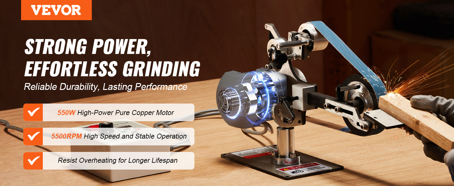 Vďaka 550W motoru z čistej medi, vysokým otáčkam 5500 ot/min, 2 režimom brúsenia a vysokokvalitným pásom 30*1 palca poskytuje táto stolová brúska s premenlivou rýchlosťou výnimočný výkon a odolnosť, čím zabezpečuje hladké brúsenie, leštenie, odstraňovanie hrdze, odstraňovanie otrepov pre jemnejšie výsledky. Posuňte svoje projekty na vyššiu úroveň!