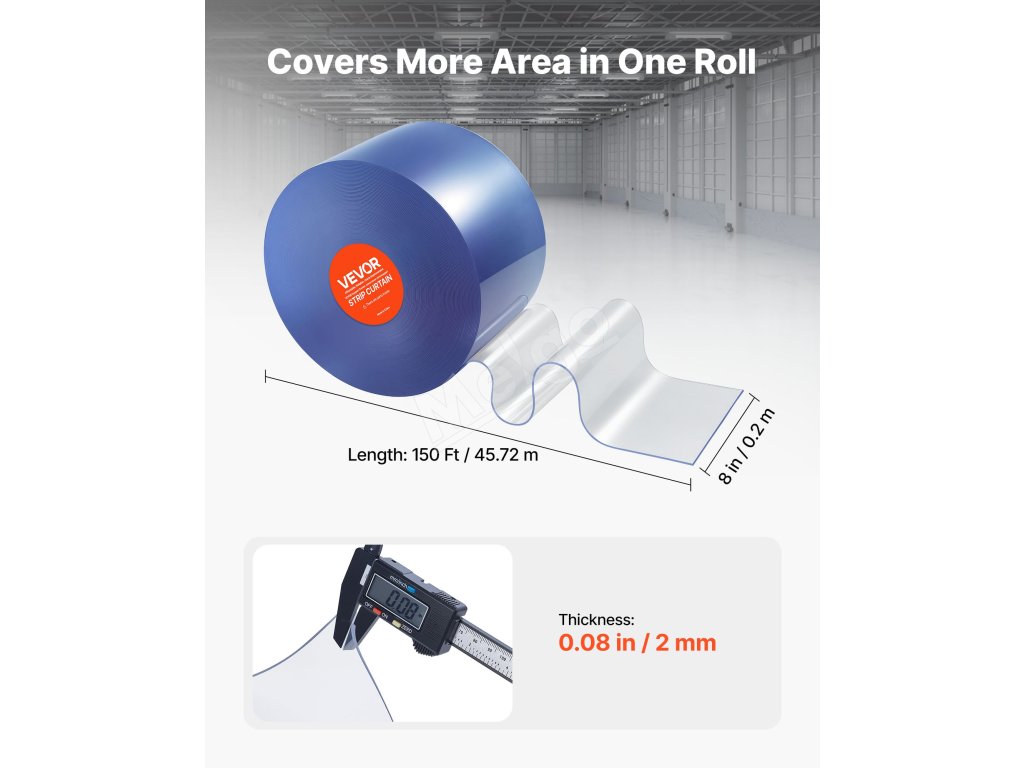 Pvc pásový záves 45.7 m × 20 cm priehľadný rolka do dverí garáže