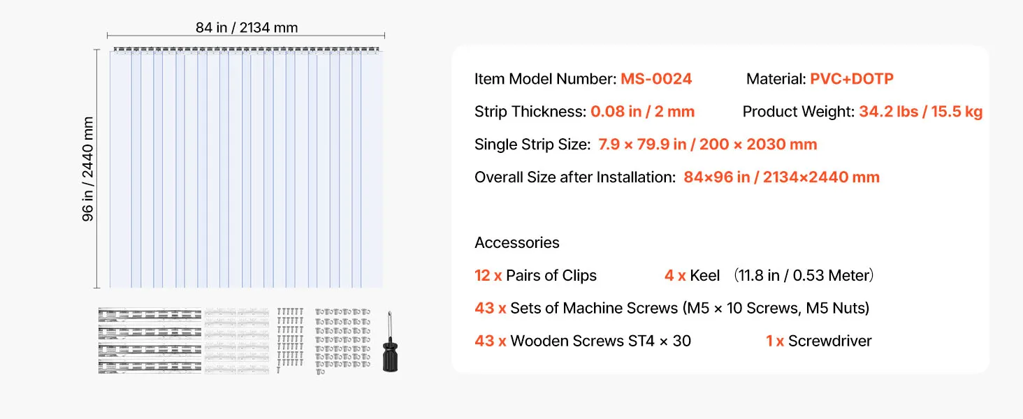 Náš pásový záves je k dispozícii vo viacerých veľkostiach, aby presne zodpovedal vašim potrebám - 96 palcov dlhý a 84 palcov široký pre pevný a trvalý výkon. Plné pokrytie dverí bez ohýbania, deformácie alebo straty tvaru.