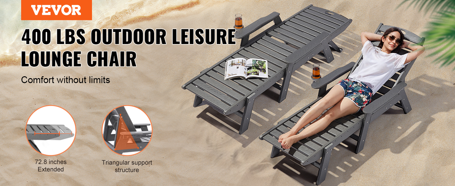 Naše lehátko unesie až 400 kg a meria 72,8 palca, čo poskytuje dostatok priestoru na natiahnutie a relaxáciu. Ideálne na leňošenie na slnku alebo na pláži!