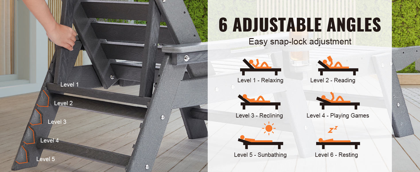 Vďaka jednoduchému systému praciek môžete operadlo ľahko nastaviť do 6 rôznych polôh. Či už chcete ležať na rovine, sedieť alebo nájsť pohodlný uhol naklonenia, toto plastové lehátko k bazénu vás pokryje.