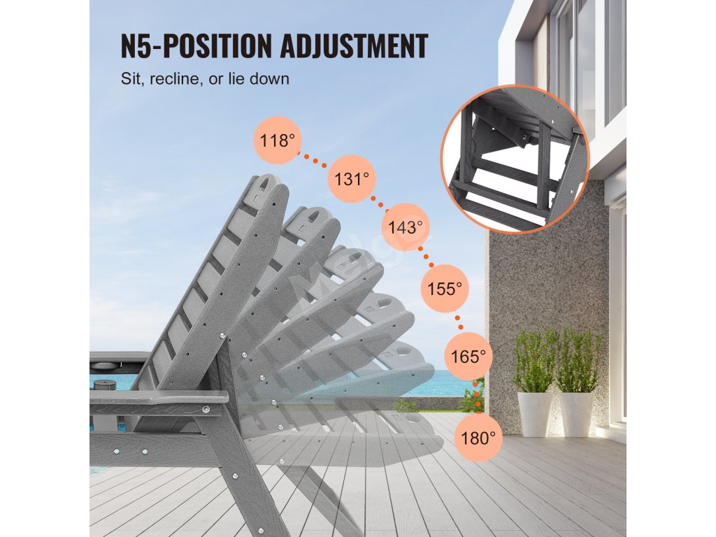 Vďaka jednoduchému systému praciek môžete operadlo ľahko nastaviť do 6 rôznych polôh. Či už chcete ležať na rovine, sedieť alebo nájsť pohodlný uhol naklonenia, toto plastové lehátko k bazénu vás pokryje.