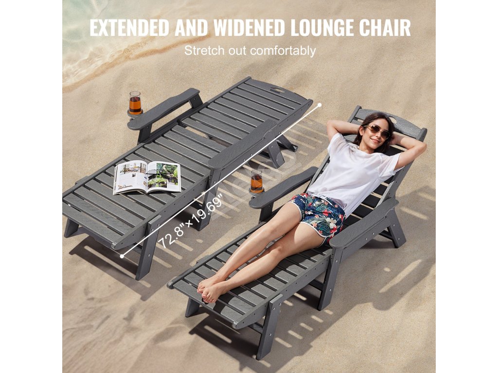 Naše lehátko unesie až 400 kg a meria 72,8 palca, čo poskytuje dostatok priestoru na natiahnutie a relaxáciu. Ideálne na leňošenie na slnku alebo na pláži!