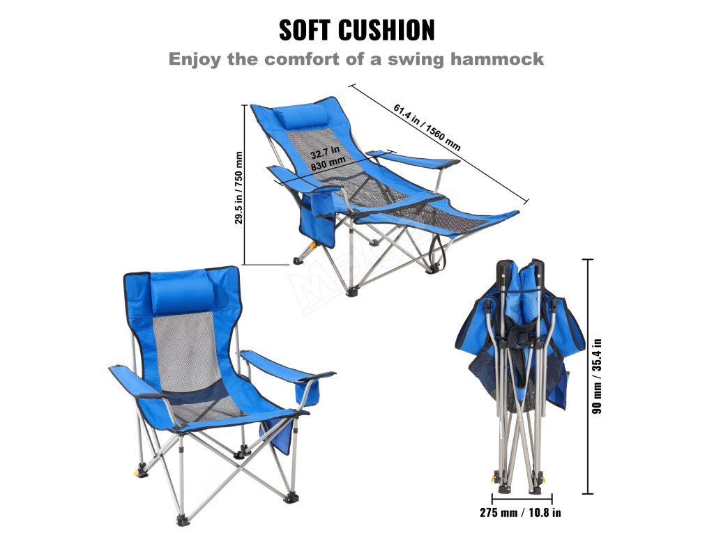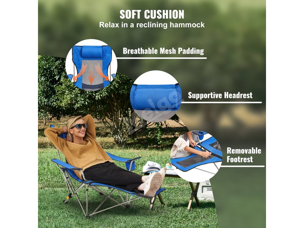 Skladacie kempingové kreslo nosnosť 330 lbs, 4 polohy, opierka na nohy