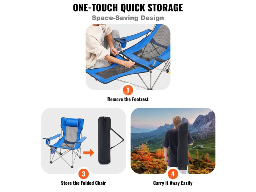S hmotnosťou len 4,8 kg (10,58 lbs) sa toto kempingové kreslo s podnožkou ľahko prepravuje na kempovanie, rybárčenie alebo výlety na pláž bez toho, aby sa zvýšil váš náklad.