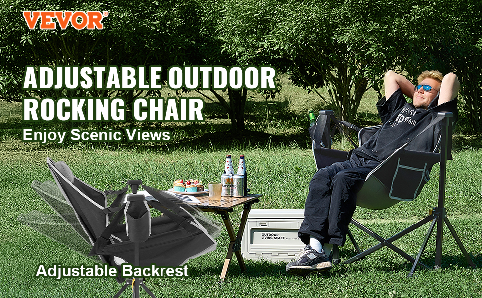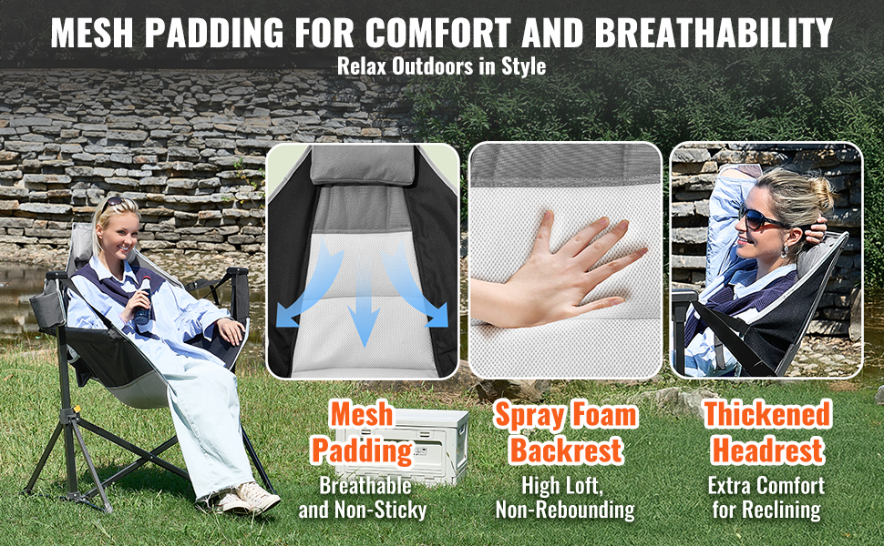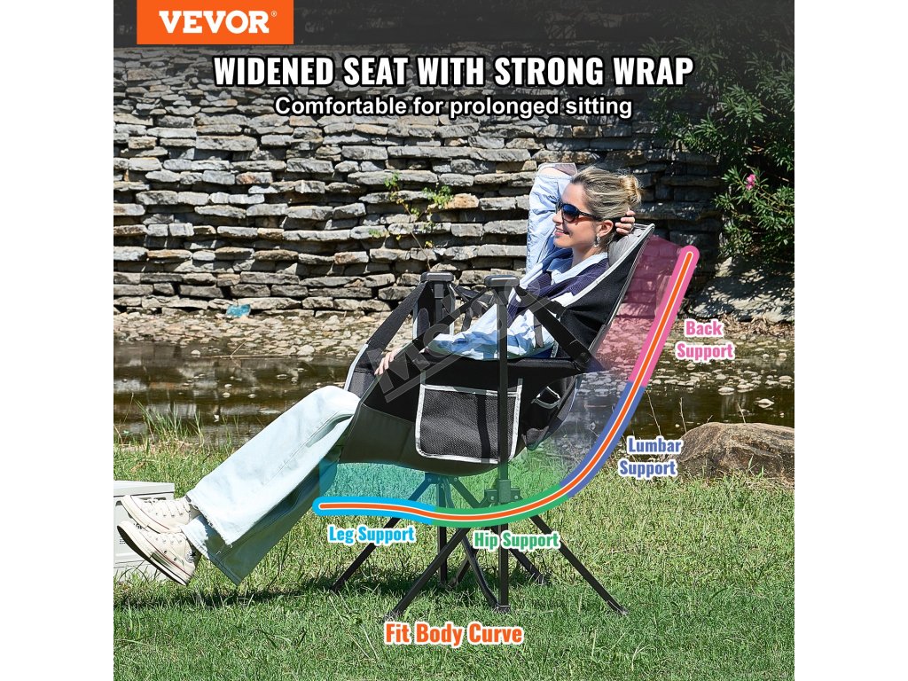 Sklápacie hojdacie kempingové kreslo, držiak na pohár, nosnosť 300 lbs