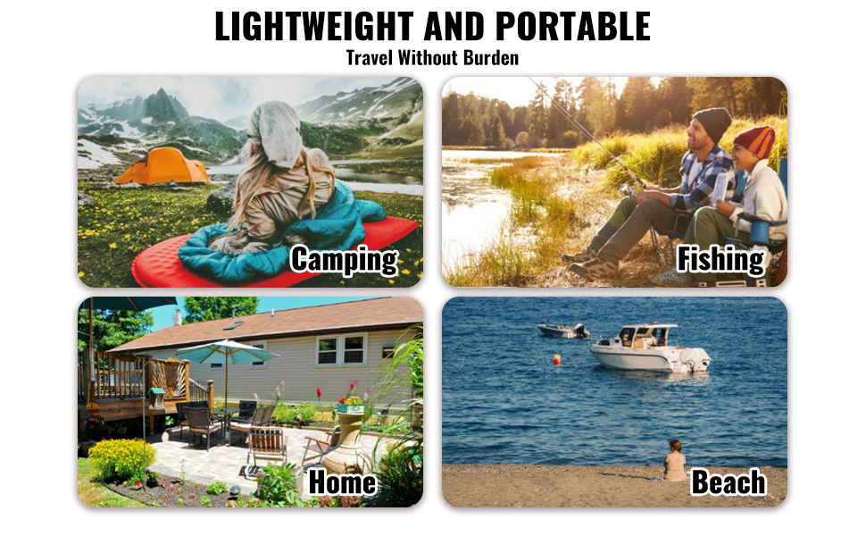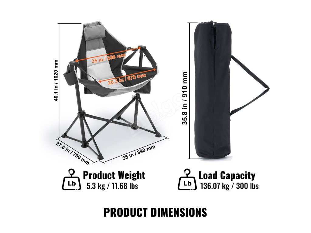 Toto hojdacie skladacie kreslo váži len 5,3 kg (11,68 lbs), takže sa dá ľahko prenášať na kempovanie, rybárčenie alebo na pláž a nepridáva vám na váhe.