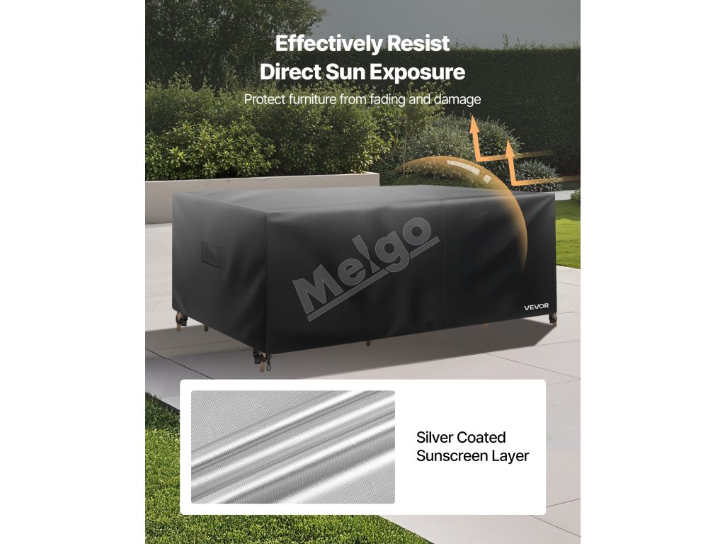 Kryt na terasový nábytok má univerzálnu veľkosť a poskytuje spoľahlivú ochranu pre rôzne tvary a rozmery vonkajšieho nábytku. Zabraňuje poškodeniu spôsobenému poveternostnými vplyvmi, udržiava váš vonkajší stôl a stoličky v skvelom stave a predlžuje ich životnosť.