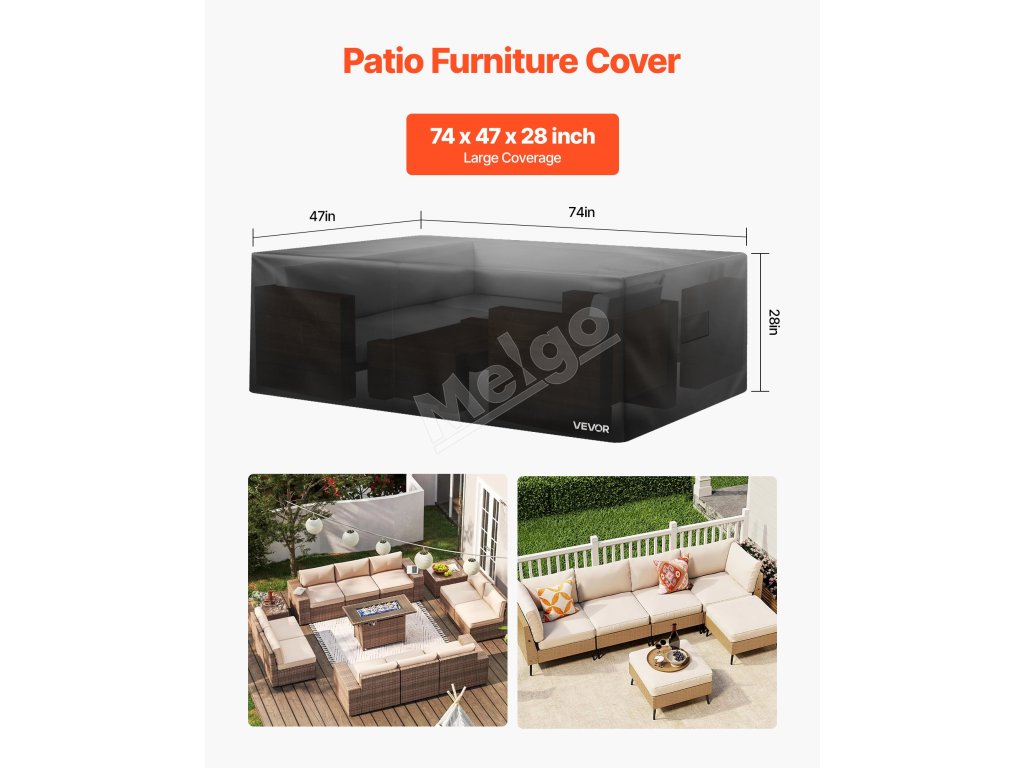Kryt na terasový nábytok má univerzálnu veľkosť a poskytuje spoľahlivú ochranu pre rôzne tvary a rozmery vonkajšieho nábytku. Zabraňuje poškodeniu spôsobenému poveternostnými vplyvmi, udržiava váš vonkajší stôl a stoličky v skvelom stave a predlžuje ich životnosť.