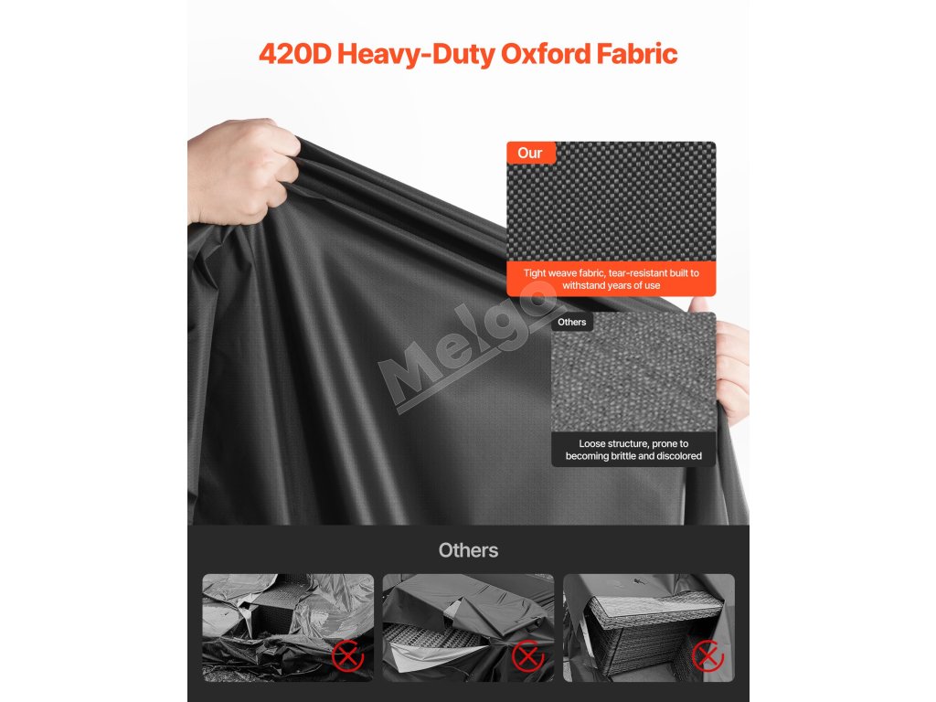 Tento poťah na vonkajší stôl je vyrobený z odolnej tkaniny 420D Oxford a je odolný proti roztrhnutiu, opotrebovaniu a UV žiareniu. Je skonštruovaný tak, aby vydržal vďaka vnútornej vodeodolnej vrstve, takže je ideálny do drsných vonkajších podmienok.