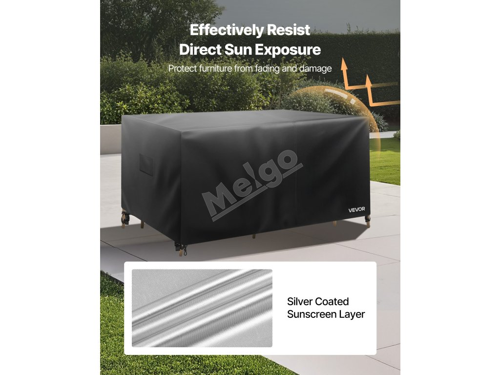 Kryt na terasový nábytok má univerzálnu veľkosť a poskytuje spoľahlivú ochranu pre rôzne tvary a rozmery vonkajšieho nábytku. Zabraňuje poškodeniu spôsobenému poveternostnými vplyvmi, udržiava váš vonkajší stôl a stoličky v skvelom stave a predlžuje ich životnosť.
