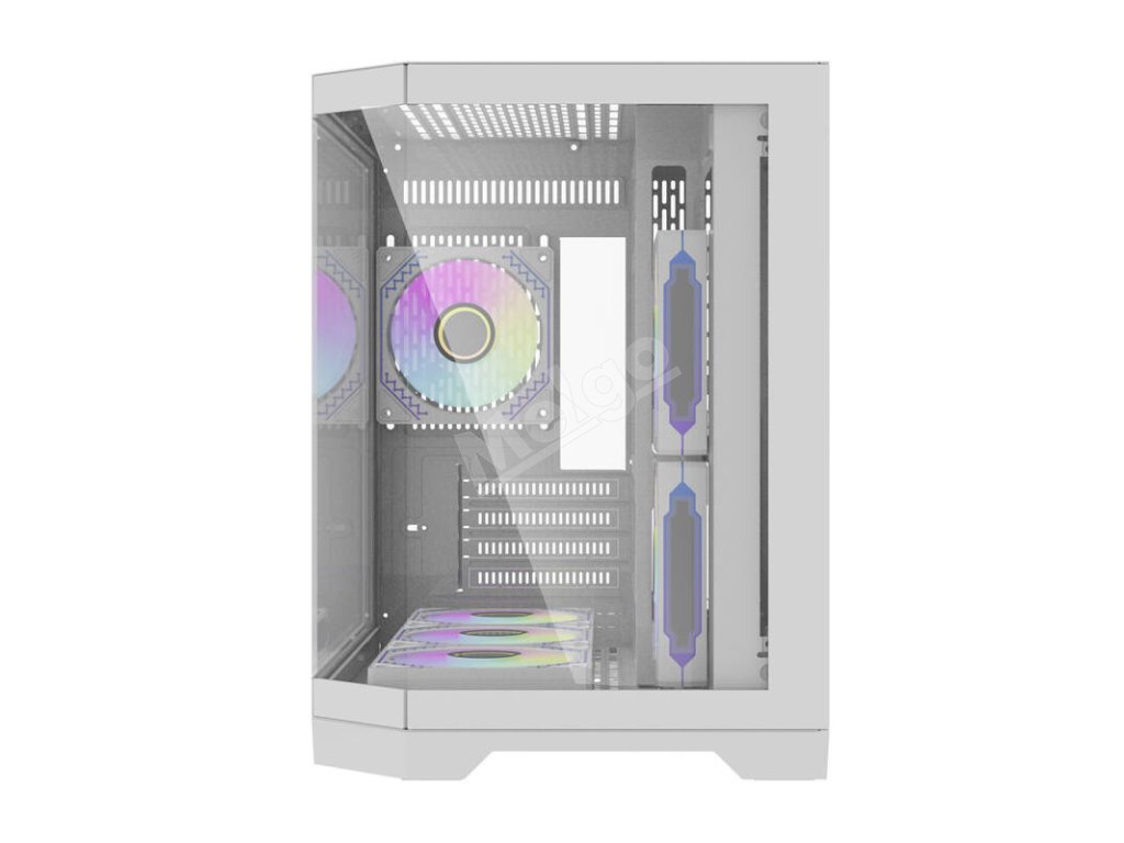 Skriňa sa vyznačuje tromi priehľadnými panelmi z tvrdého skla, takže poskytuje široký panoramatický pohľad na vnútro počítača. Takéto riešenie umožňuje originálnym spôsobom zvýrazniť jednotlivé komponenty! Použite napríklad komponenty s podsvietením RGB a dodajte svojmu zariadeniu jedinečný herný charakter.