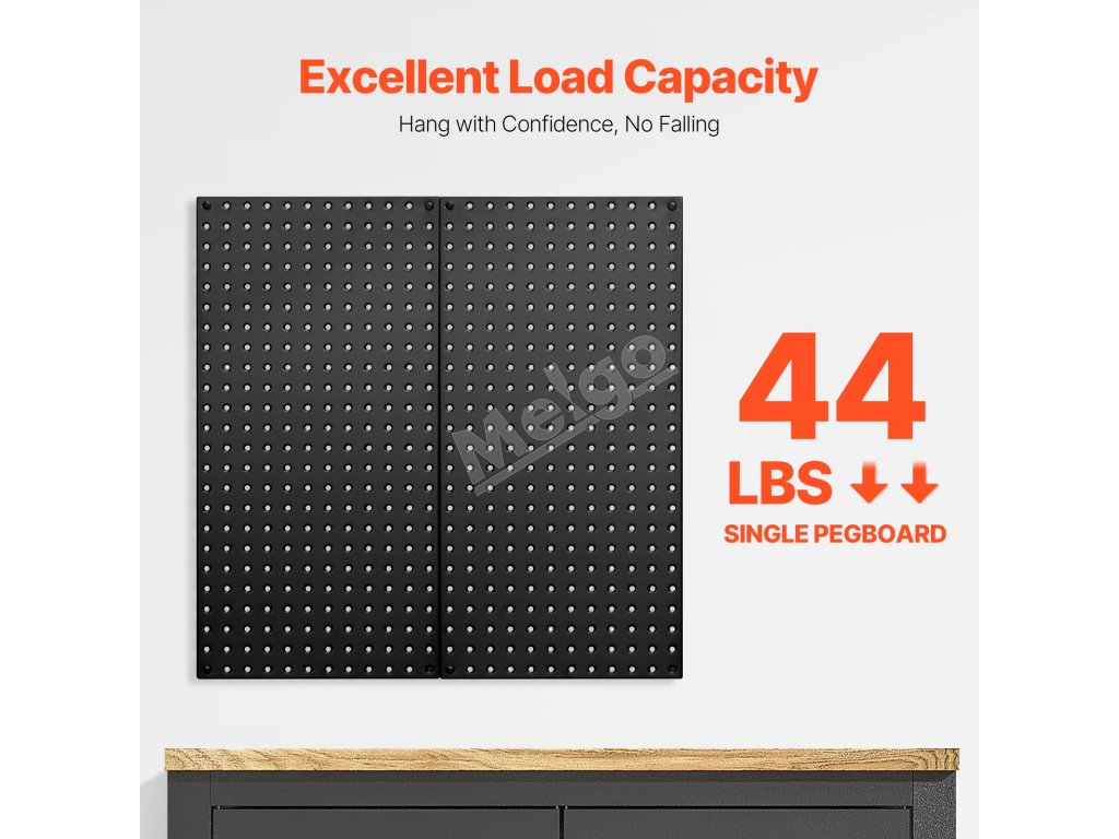 Vďaka vynikajúcej nosnosti zabezpečuje táto kovová vešiaková doska stabilitu, či už vešate náradie na opravu auta v garáži alebo vystavujete výrobky v železiarstve, čím vám poskytuje pokoj.