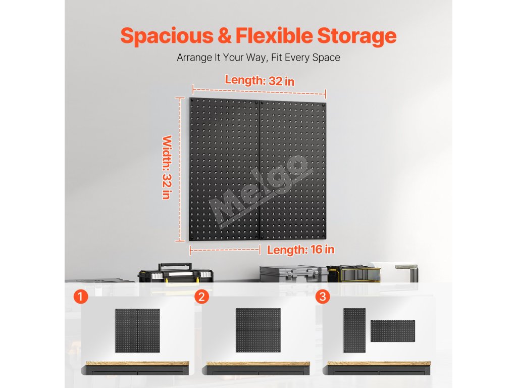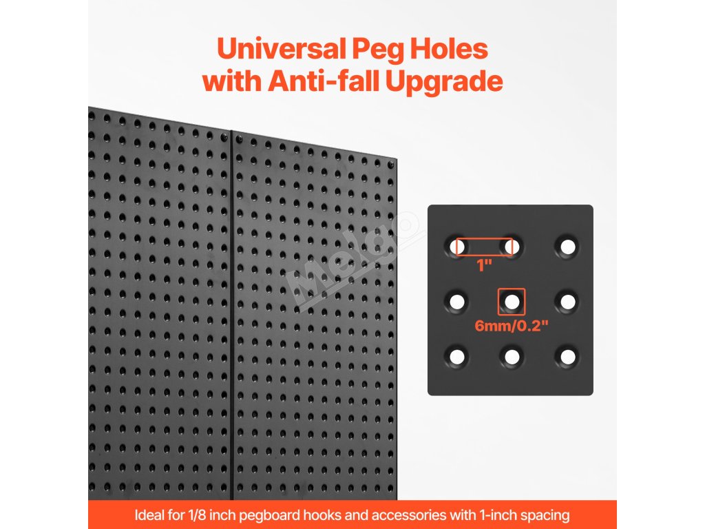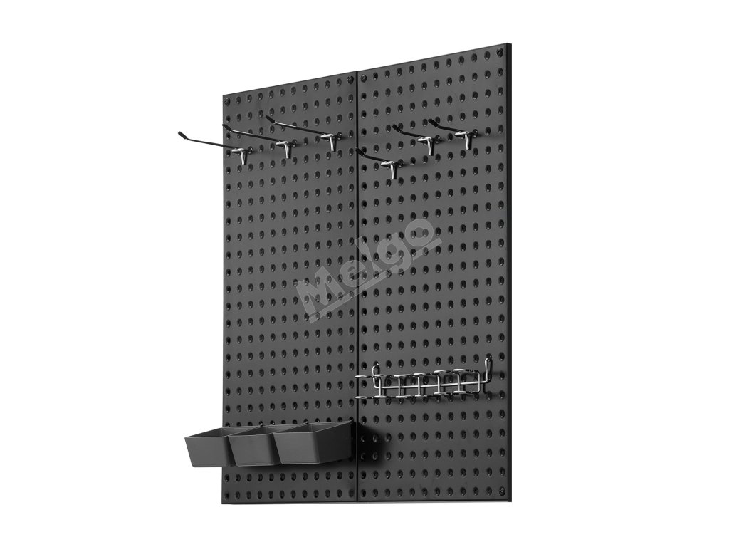 Vďaka konštrukcii so štandardnými otvormi je táto nástenná vešiaková tabuľa kompatibilná so širokou škálou úložného príslušenstva. Či už ide o zavesenie náradia alebo umiestnenie predmetov, spĺňa všetky vaše potreby.