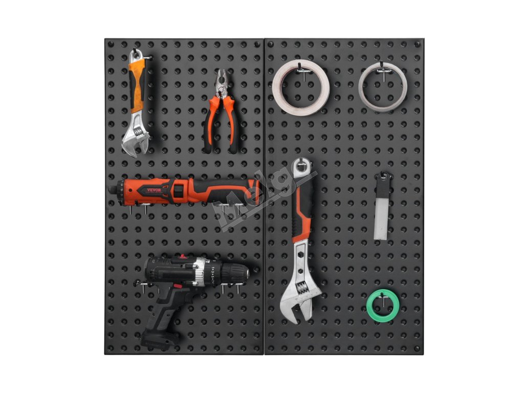 Dierované panely na náradie 32"×16", 2 ks, oceľové, čierne, na stenu