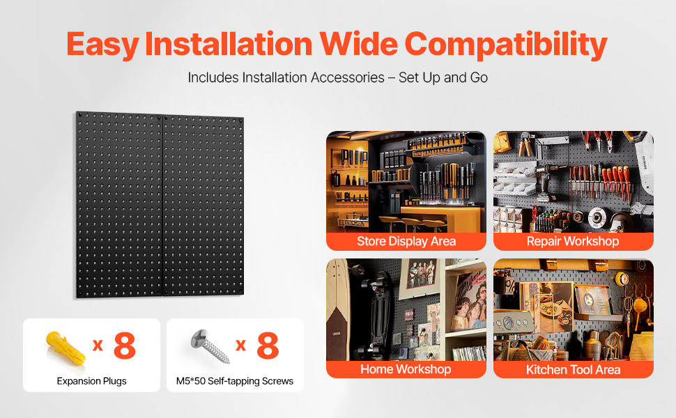 Táto sada kovových kolíkových panelov je ideálna pre rôzne priestory vrátane garáží, železiarní a domácich dielní. Je skonštruovaná tak, aby zvládla veľké zaťaženie, a navrhnutá s ohľadom na trvanlivosť, poskytuje flexibilné úložisko pre všetky vaše nástroje a vyhovie vašim rôznorodým potrebám v rôznych pracovných prostrediach.