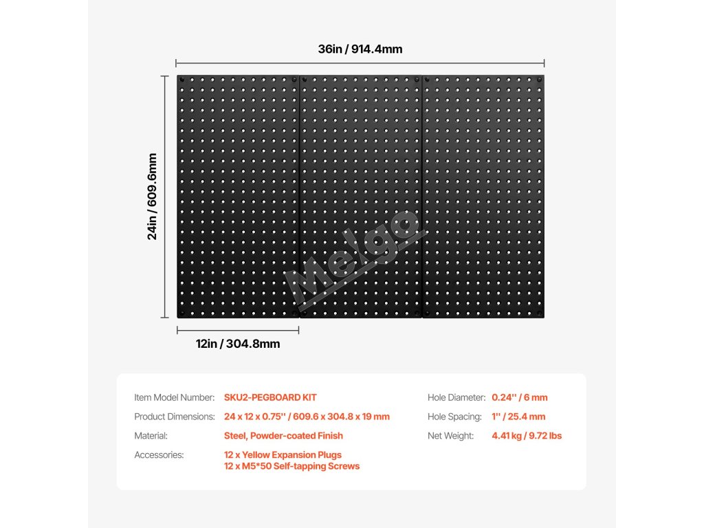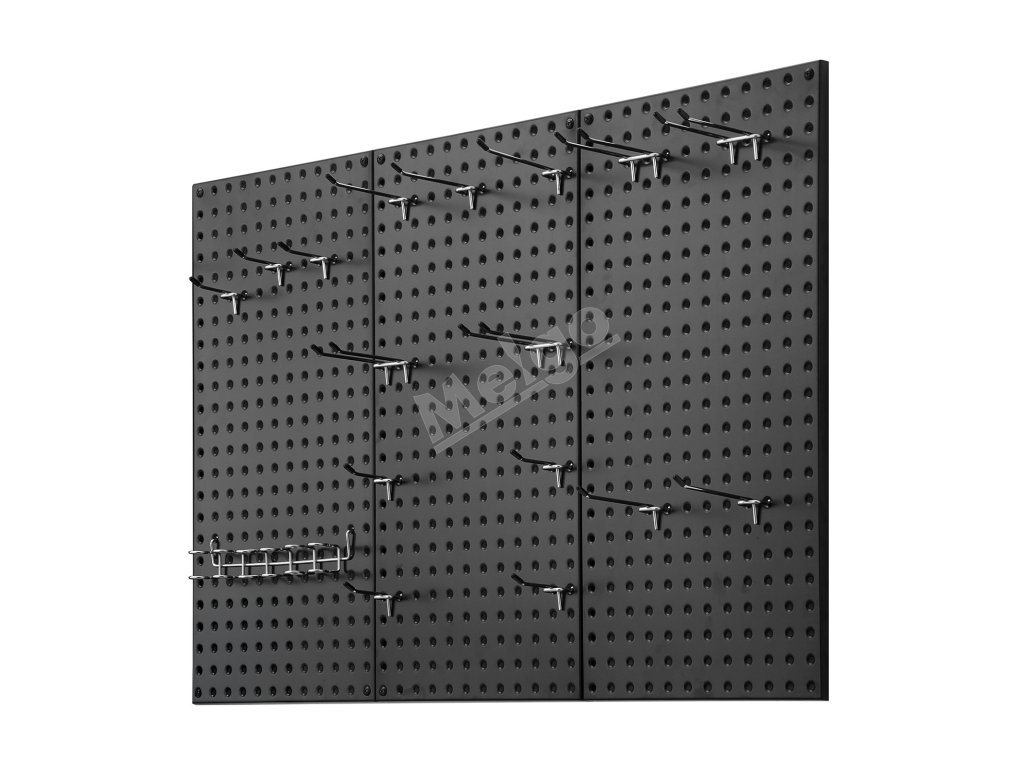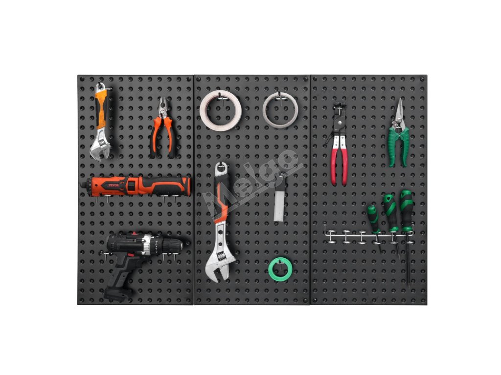 Dierovaný panel na stenu na náradie 24" × 12", 3 ks, oceľ, čierny