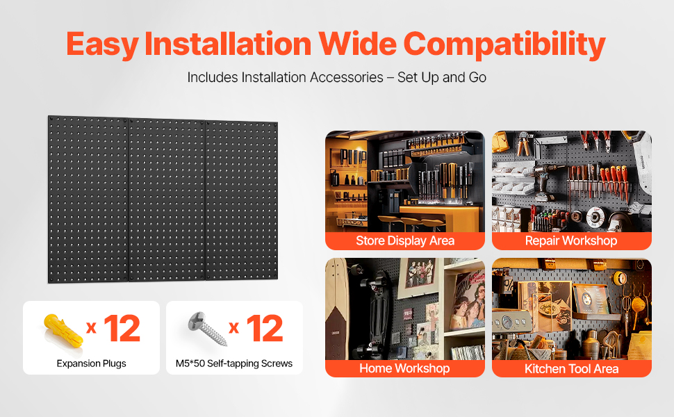Táto sada kovových kolíkových panelov je ideálna pre rôzne priestory vrátane garáží, železiarní a domácich dielní. Je skonštruovaná tak, aby zvládla veľké zaťaženie, a navrhnutá s ohľadom na trvanlivosť, poskytuje flexibilné úložisko pre všetky vaše nástroje a vyhovie vašim rôznorodým potrebám v rôznych pracovných prostrediach.