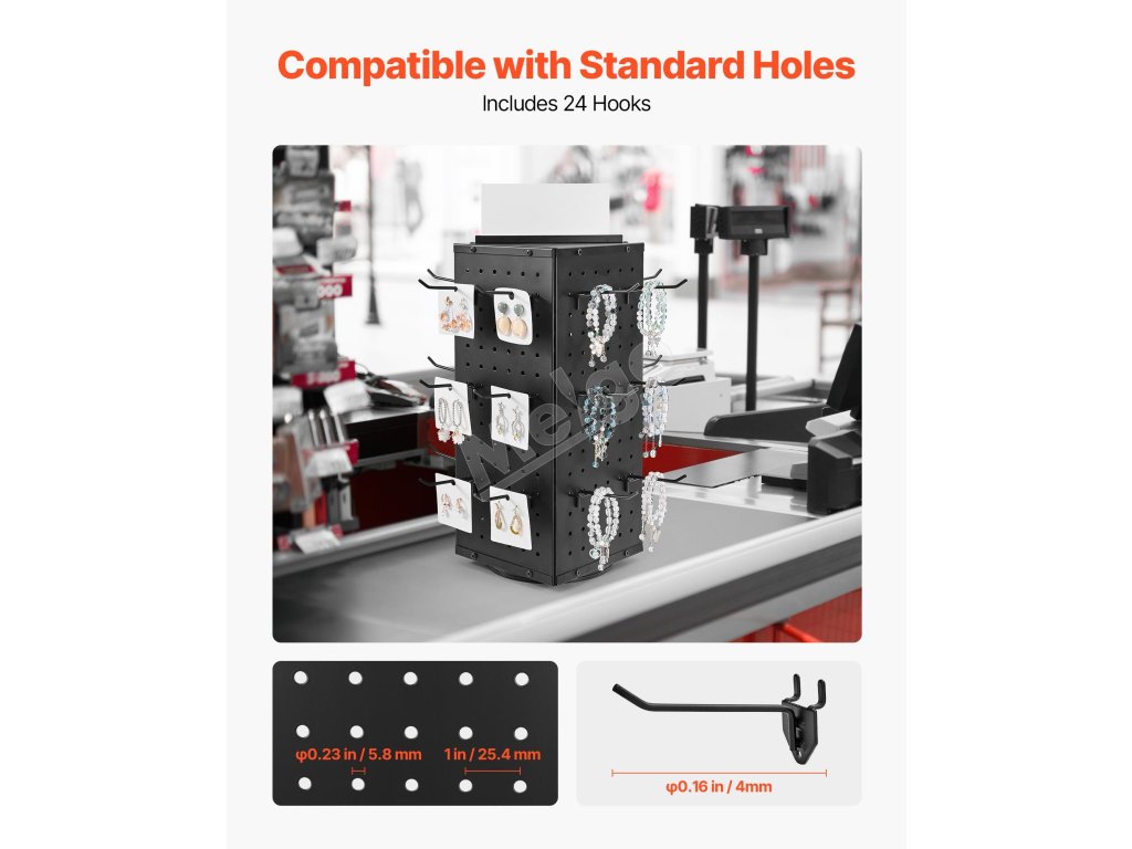 Otočný dierkovaný stojan 4-stranný, 24 háčikov, 18.8×18.8×42.6 cm