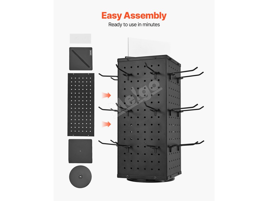 Štvorstranný otočný stojan na kolíky má ľahkú konštrukciu s flexibilnými kolieskami, vďaka čomu sa ľahko premiestňuje, čistí a usporadúva výrobky. Ideálny pre obchody s potravinami, klenotníctva a ďalšie.