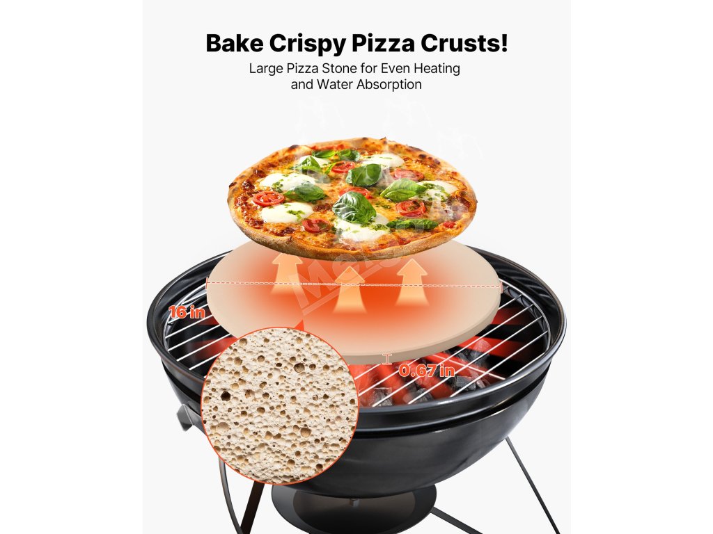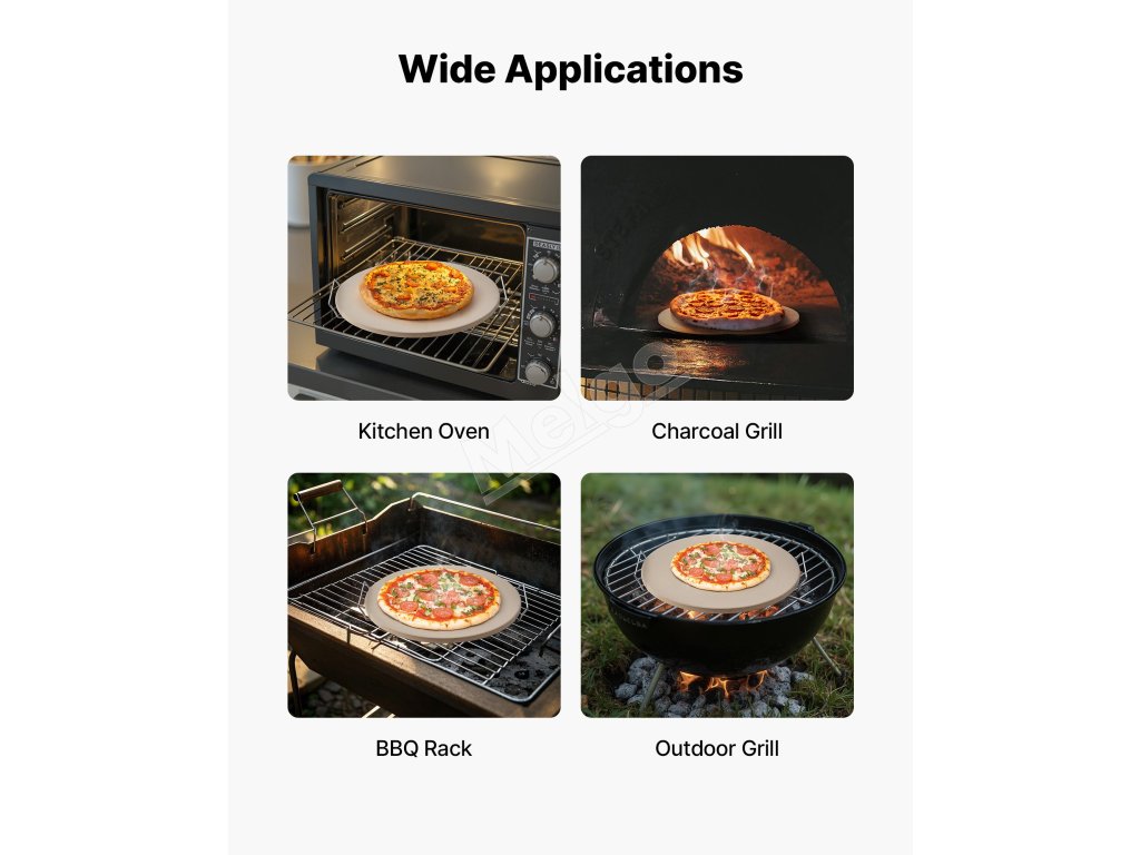 Tento veľký kameň na pečenie môžete použiť na prípravu pizze, chleba, sušienok a iných pochúťok alebo na ohrievanie jedál na obnovenie ich chrumkavej štruktúry. Či už v domácej kuchyni alebo pri vonkajšom grilovaní, všetko bude vďaka nemu chutnejšie!