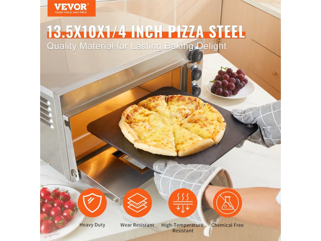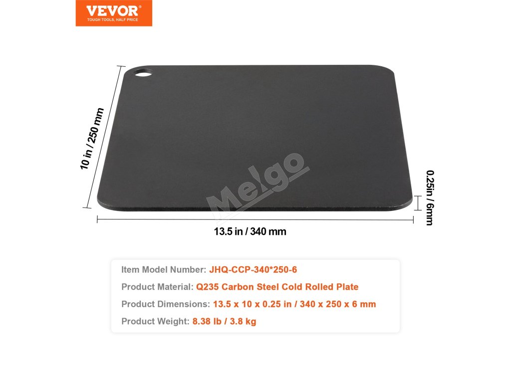 Oceľová doska na pizzu 13.5"×10"×1/4" predsezónovaná uhlíková do rúry