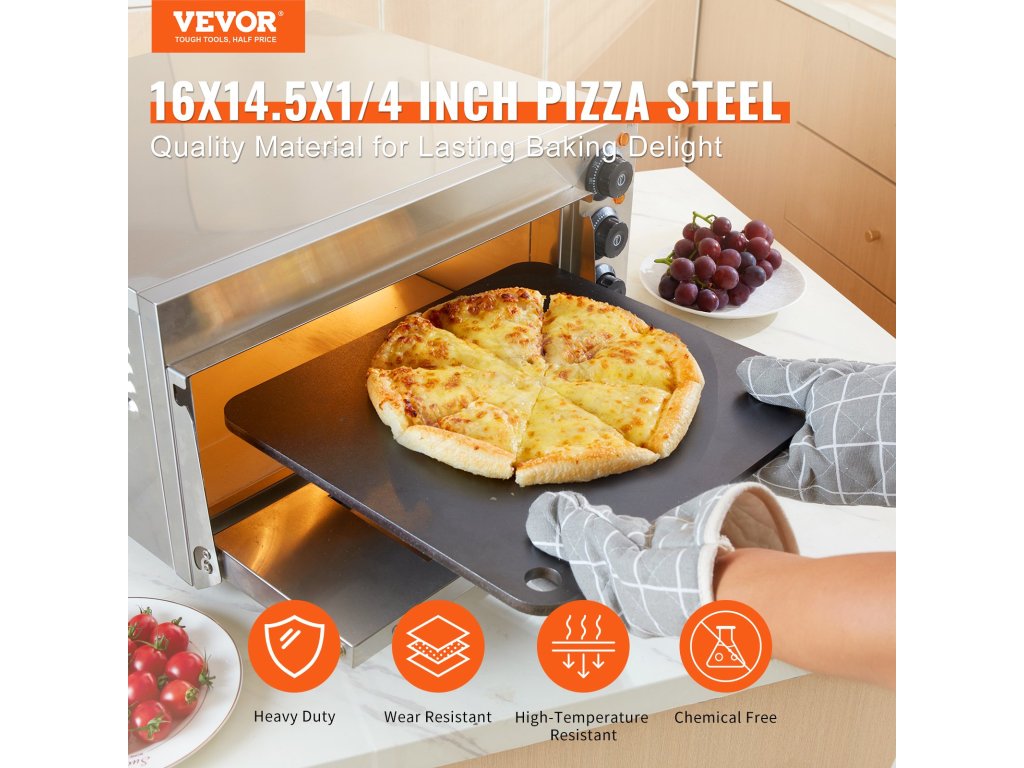 Oceľový plech na pizzu 16"×14.5"×1/4" uhlíková oceľ, do rúry a grilu