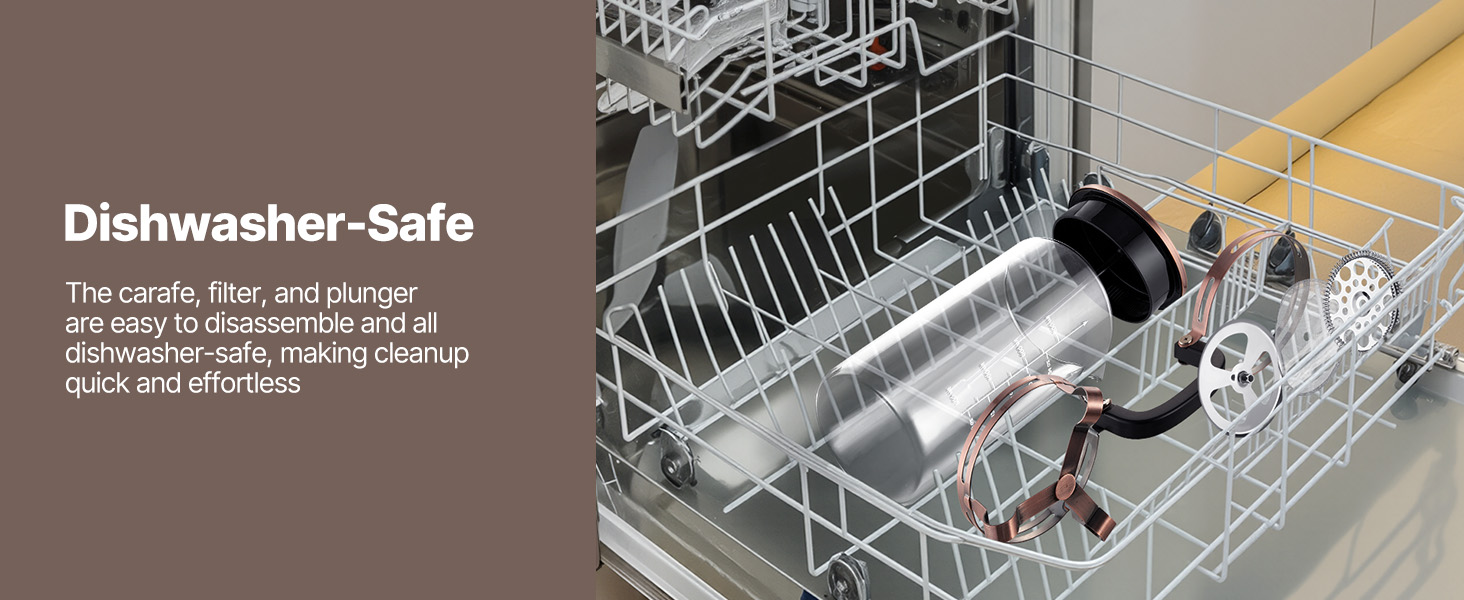 Odnímateľný dizajn umožňuje dôkladné čistenie - stačí ho hodiť do umývačky riadu. Každá časť, od sklenenej karafy až po filter, sa dá ľahko rozobrať a nezanecháva za sebou kávu ani oleje.