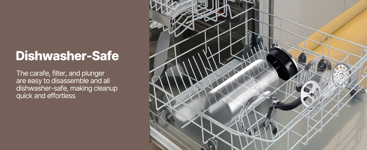 Odnímateľný dizajn umožňuje dôkladné čistenie - stačí ho hodiť do umývačky riadu. Každá časť, od sklenenej karafy až po filter, sa dá ľahko rozobrať a nezanecháva za sebou kávu ani oleje.