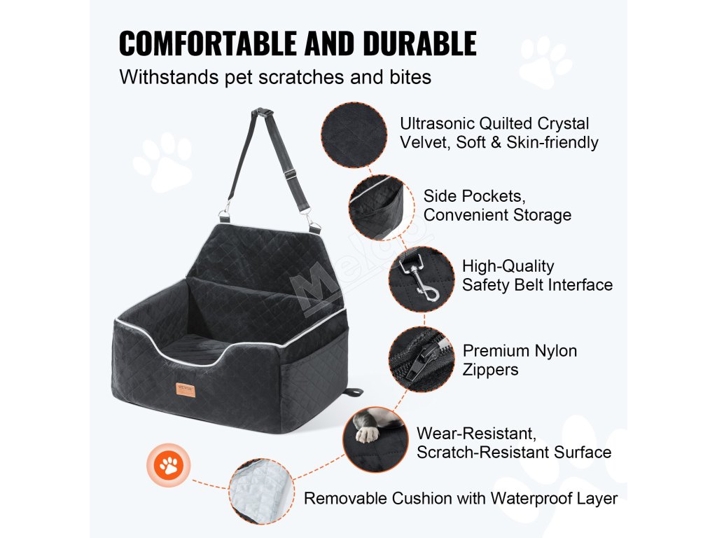 Vyrobené z mäkkej tkaniny so špongiovou výplňou pre robustné sedadlo odolné voči opotrebovaniu. Táto autosedačka pre psov vyvýši vášho domáceho miláčika a znižuje úzkosť pri cestovaní.