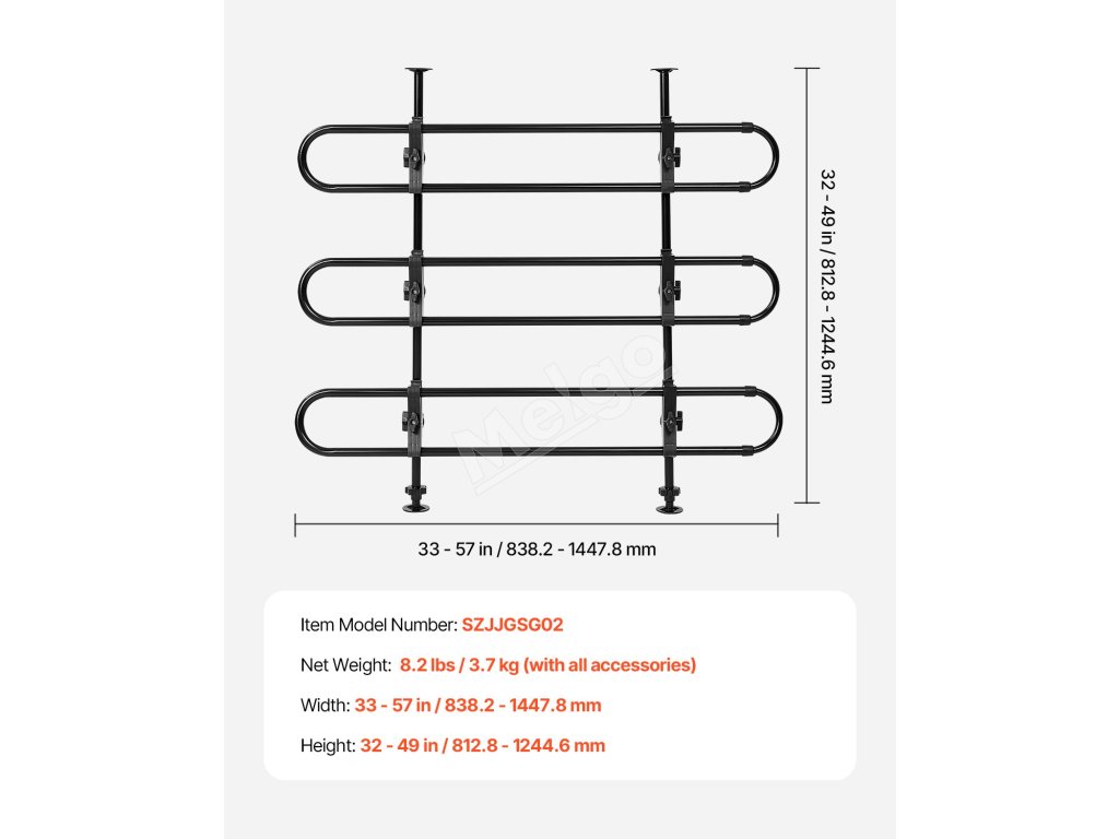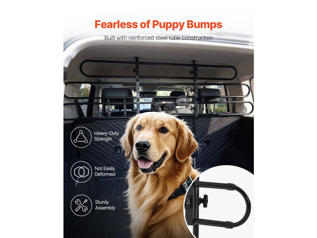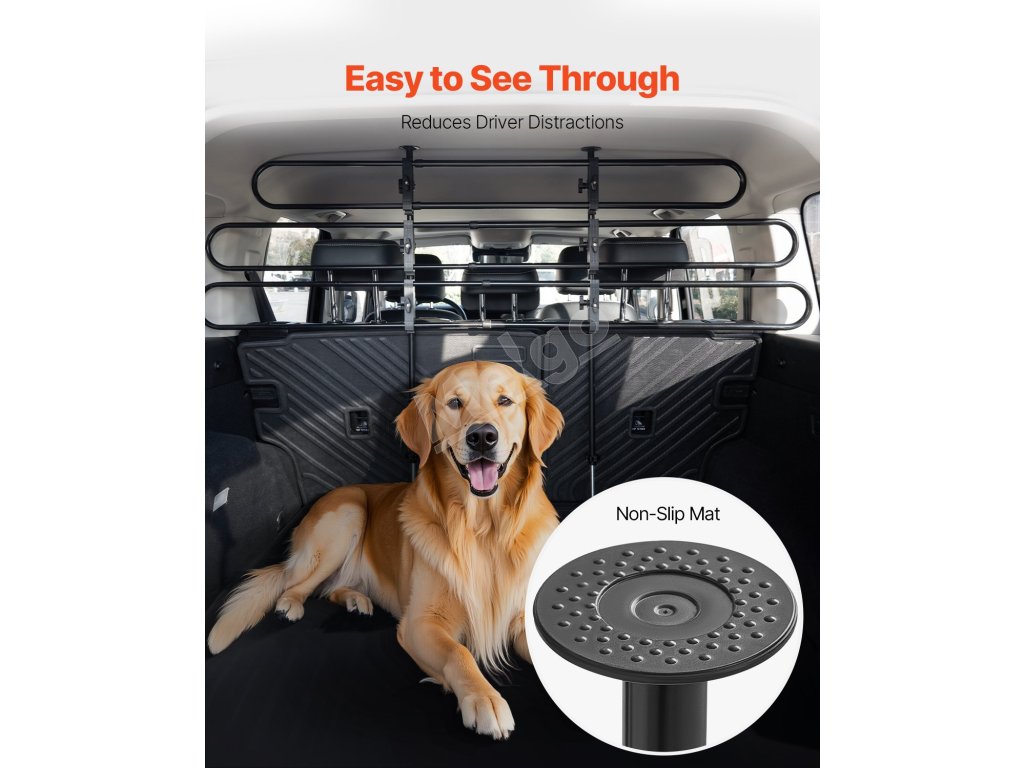 Táto zábrana pre domáce zvieratá vo vozidle, vybavená štyrmi protišmykovými podložkami pod nohy a napínacou oporou, zostáva pevne na svojom mieste vo vozidle a znižuje vibrácie a hluk počas jazdy.