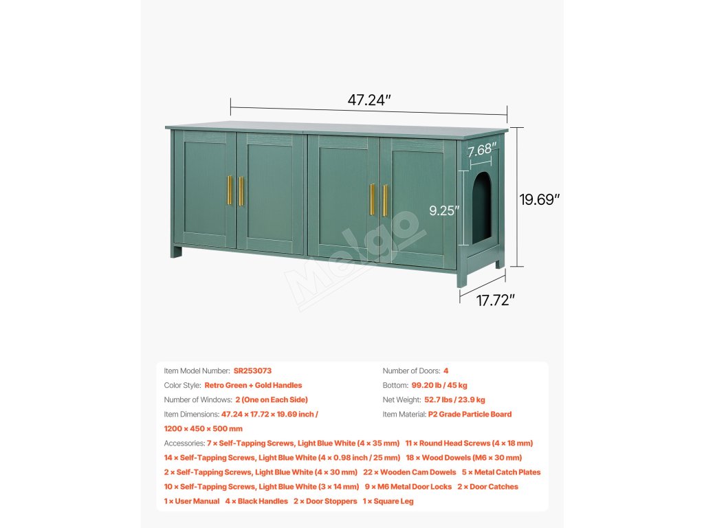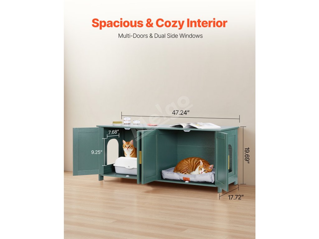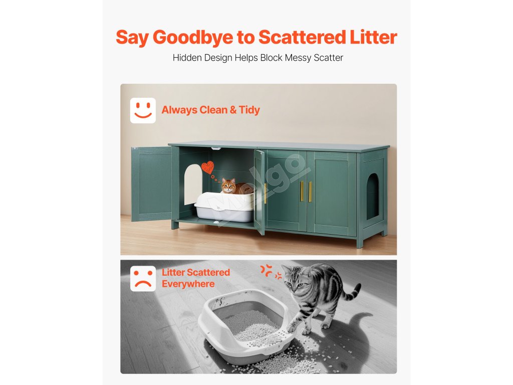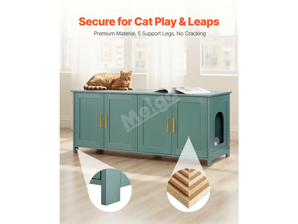 Vďaka maximálnej nosnosti 150 libier/68 kg sa do skrinky na mačacie stelivo ľahko zmestia knihy, kvety, ozdoby a iné dekorácie. S prídavnými podpornými nožičkami je nosnosť 100 lb/45 kg. Nielenže sa do nej uloží veľký box na mačacie stelivo, ale ľahko sa premení aj na útulný domček pre mačky.