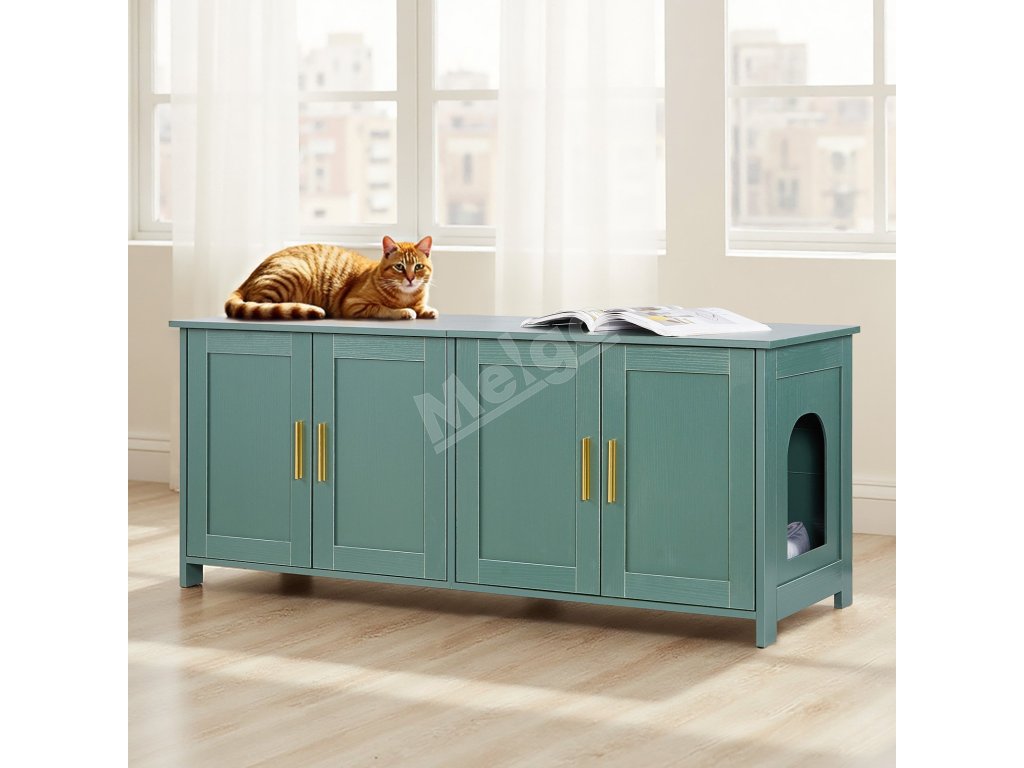 Tento skrytý nábytok pre mačky je nielen súkromnou toaletou pre mačky, ale aj malým domčekom, ktorý poskytuje viacúčelový útulný priestor. Vonkajší dizajn je jednoduchý a veľkorysý a možno ho použiť ako konferenčný stolík alebo skrinku pod televízor. Či už do obývacej izby, na balkón alebo na dvor, perfektne sa hodí.