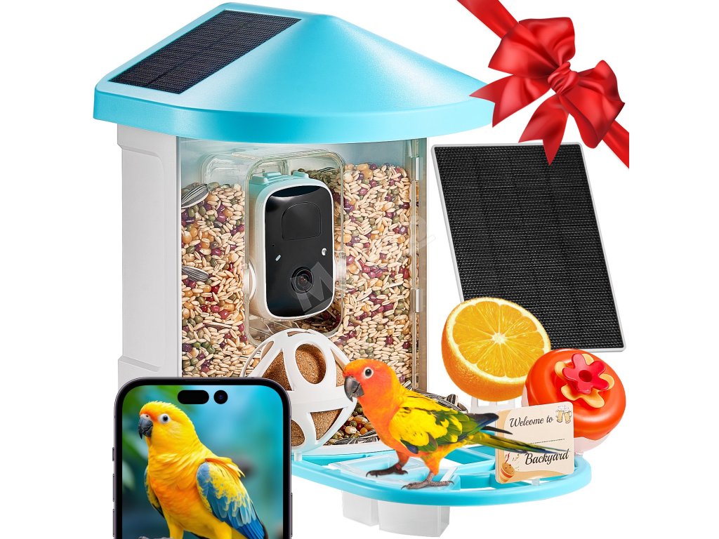 Inteligentné kŕmidlo s 2K kamerou, ai 10000+ druhov, 3 solárne panely