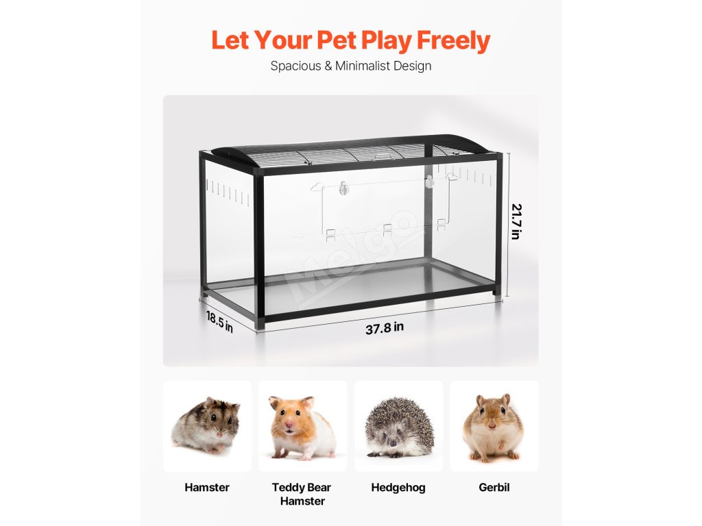Klietka pre hlodavce, priehľadná 360°, vetraná, 37.8×18.5×21.7 in