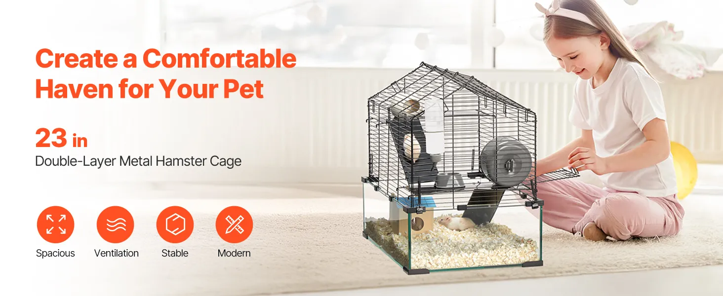 Poskytnite svojmu domácemu miláčikovi pohodlné útočisko! Táto 360-stupňová panoramatická klietka pre škrečka je priestranná a odolná, zmestí sa do nej 5 až 6 škrečkov. Ponúka jednoduchú montáž a čistenie, zatiaľ čo vynikajúci ventilačný systém zabezpečuje zdravé prostredie - je to ideálna voľba pre majiteľov domácich zvierat.