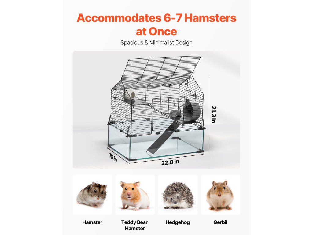 Poskytnite svojmu domácemu miláčikovi pohodlné útočisko! Táto 360-stupňová panoramatická klietka pre škrečka je priestranná a odolná, zmestí sa do nej 5 až 6 škrečkov. Ponúka jednoduchú montáž a čistenie, zatiaľ čo vynikajúci ventilačný systém zabezpečuje zdravé prostredie - je to ideálna voľba pre majiteľov domácich zvierat.