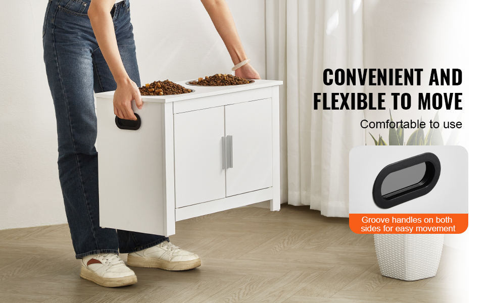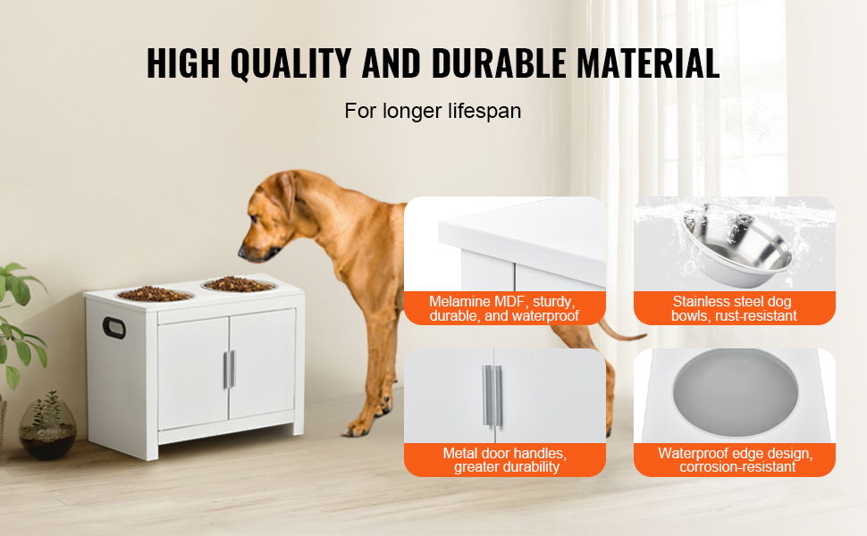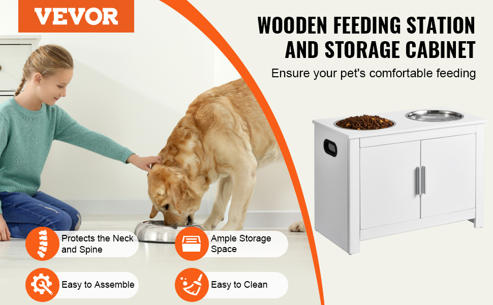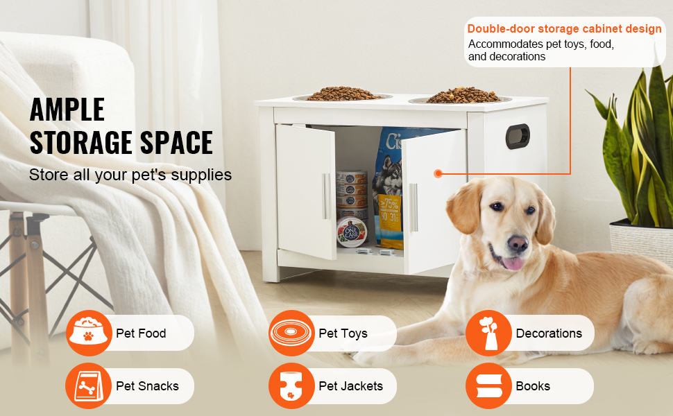 Vďaka veľkej konštrukcii úložnej skrinky ponúka tento vyvýšený stojan na misky pre psov dostatok úložného priestoru na potreby pre domáce zvieratá a dekorácie.
