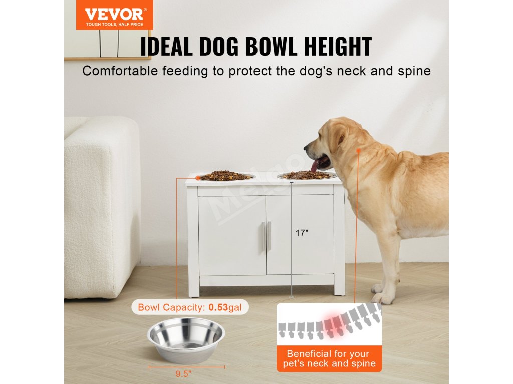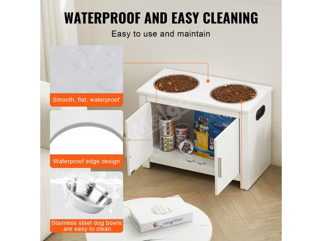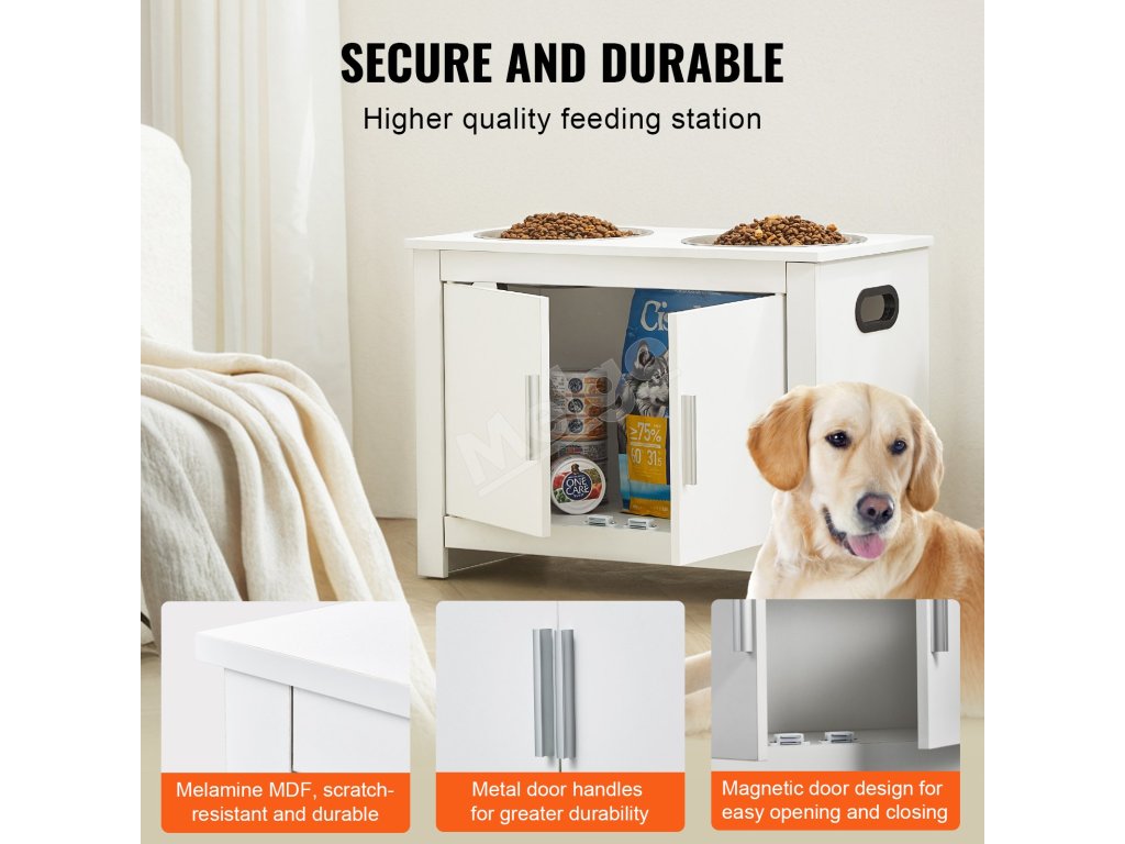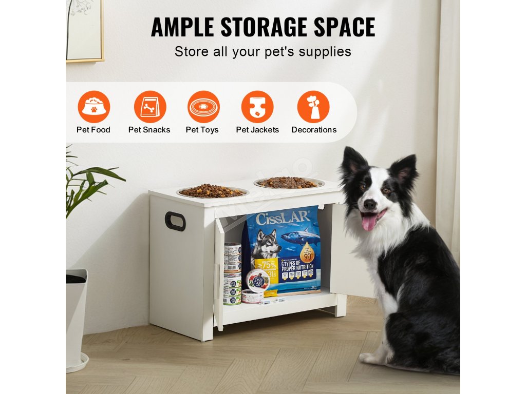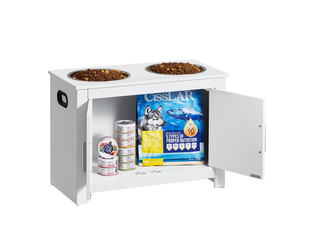 Vďaka veľkej konštrukcii úložnej skrinky ponúka tento vyvýšený stojan na misky pre psov dostatok úložného priestoru na potreby pre domáce zvieratá a dekorácie.