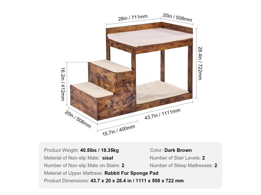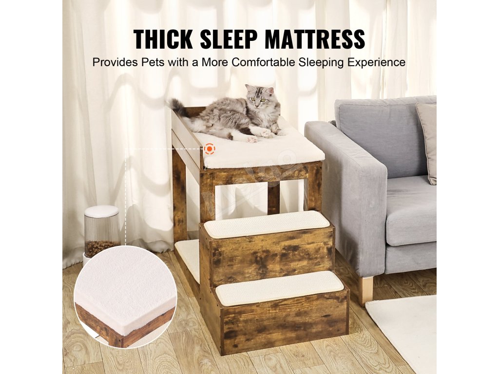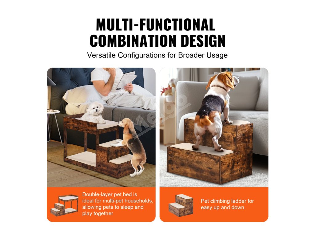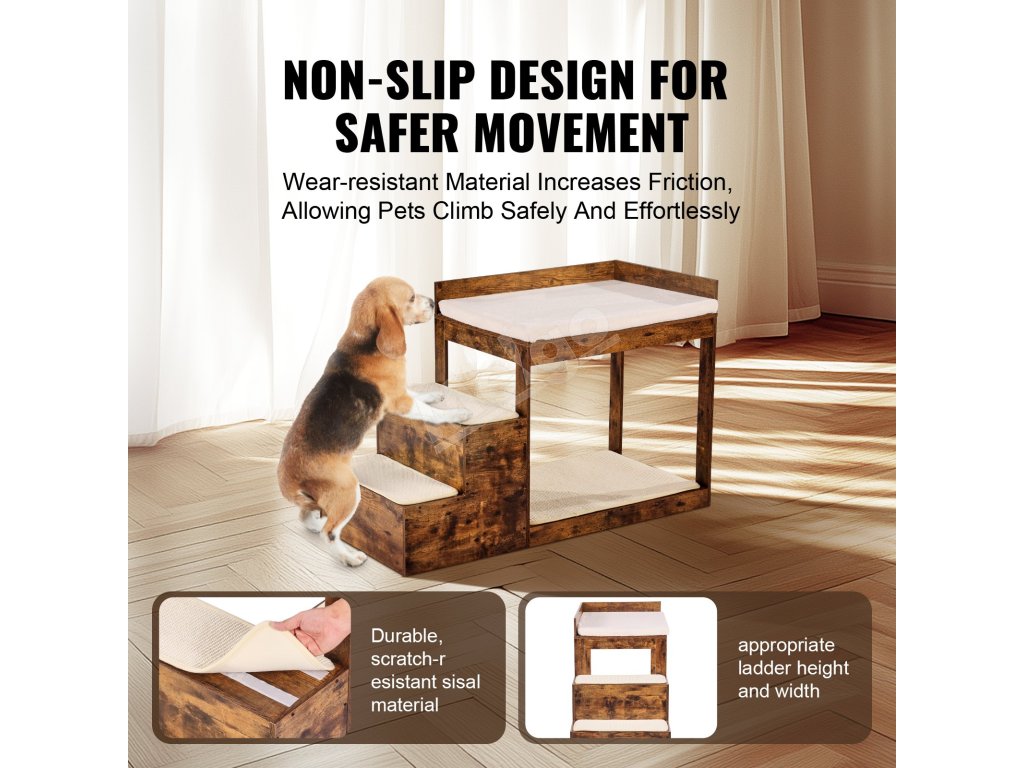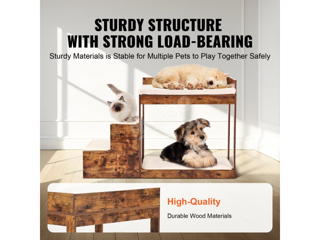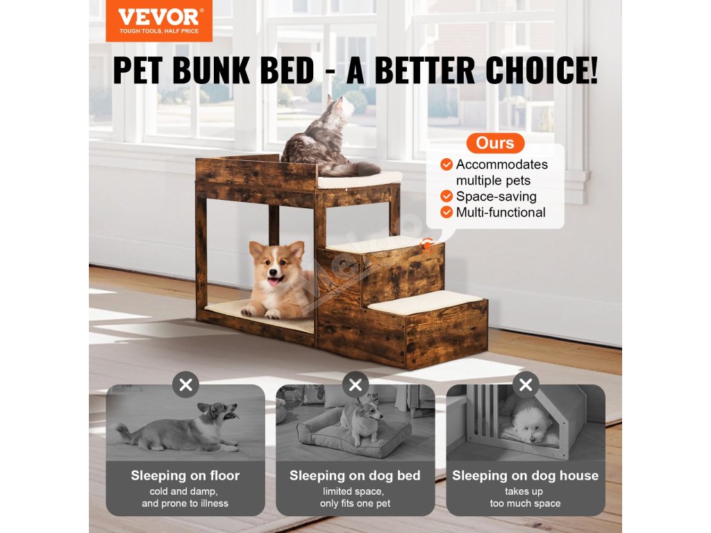 Dvojposchodová posteľ pre domáce zvieratá VEVOR je multifunkčný výrobok kombinujúci dvojposchodovú posteľ pre domáce zvieratá a lezeckú plošinu pre domáce zvieratá, ktorý sa vyznačuje priestrannosťou, protišmykovosťou a odolnosťou proti opotrebovaniu a trvanlivosťou, čo umožňuje vašim domácim zvieratám pohodlne, bezpečne a jednoducho vyliezť a odpočívať.
