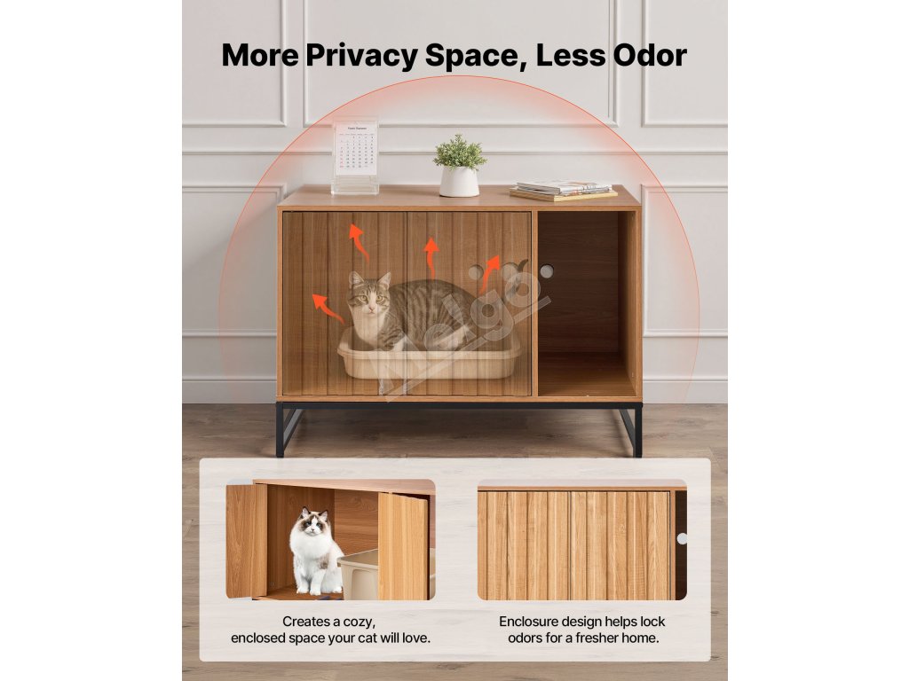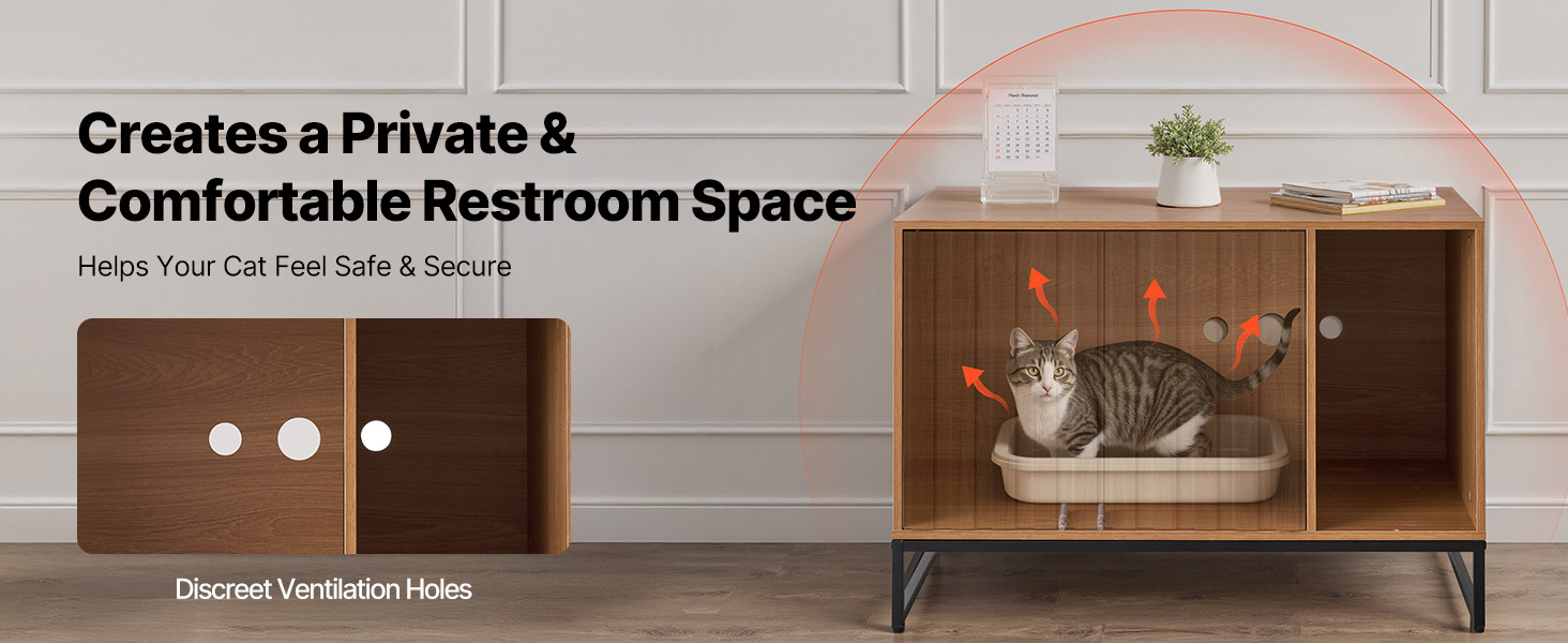Nábytok do boxu na mačacie stelivo má uzavretú konštrukciu, ktorá v kombinácii so skrytými vetracími otvormi blokuje zápach a zároveň udržiava cirkuláciu vzduchu. Vytvára uzavretý a súkromný priestor na toaletu pre vaše mačky.