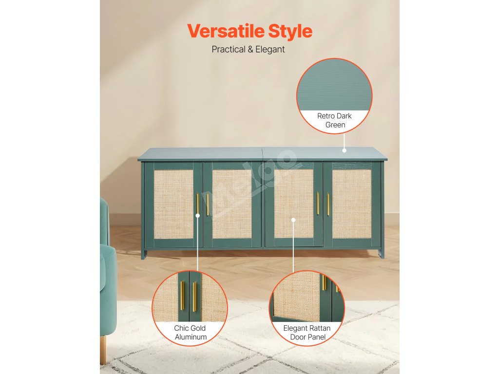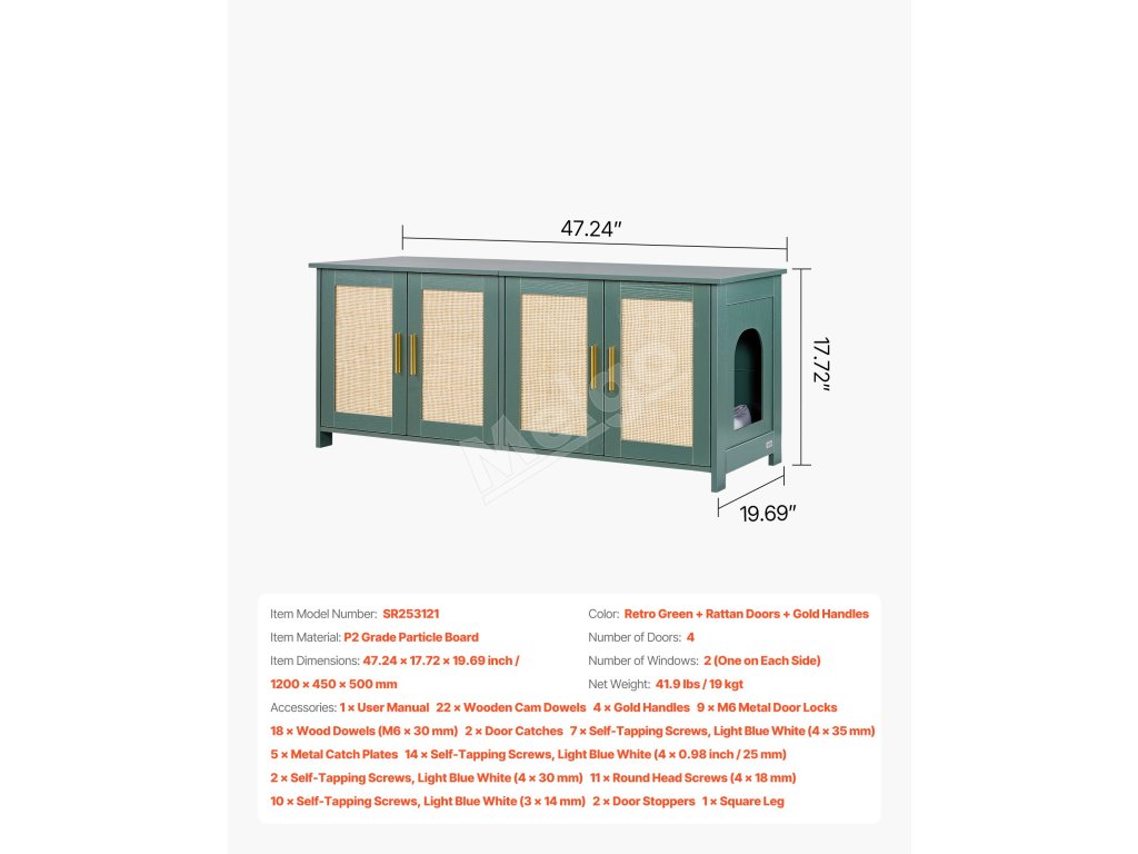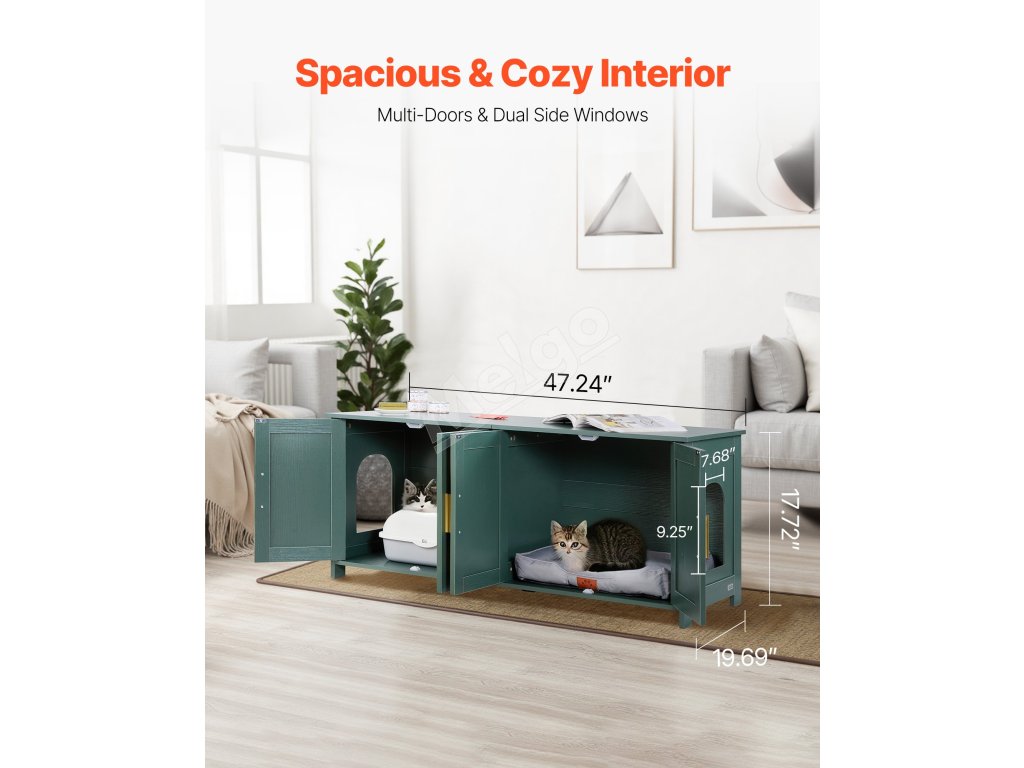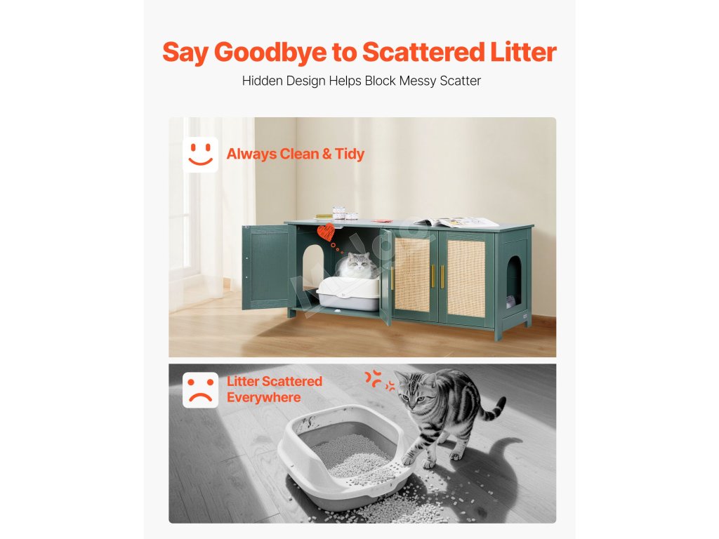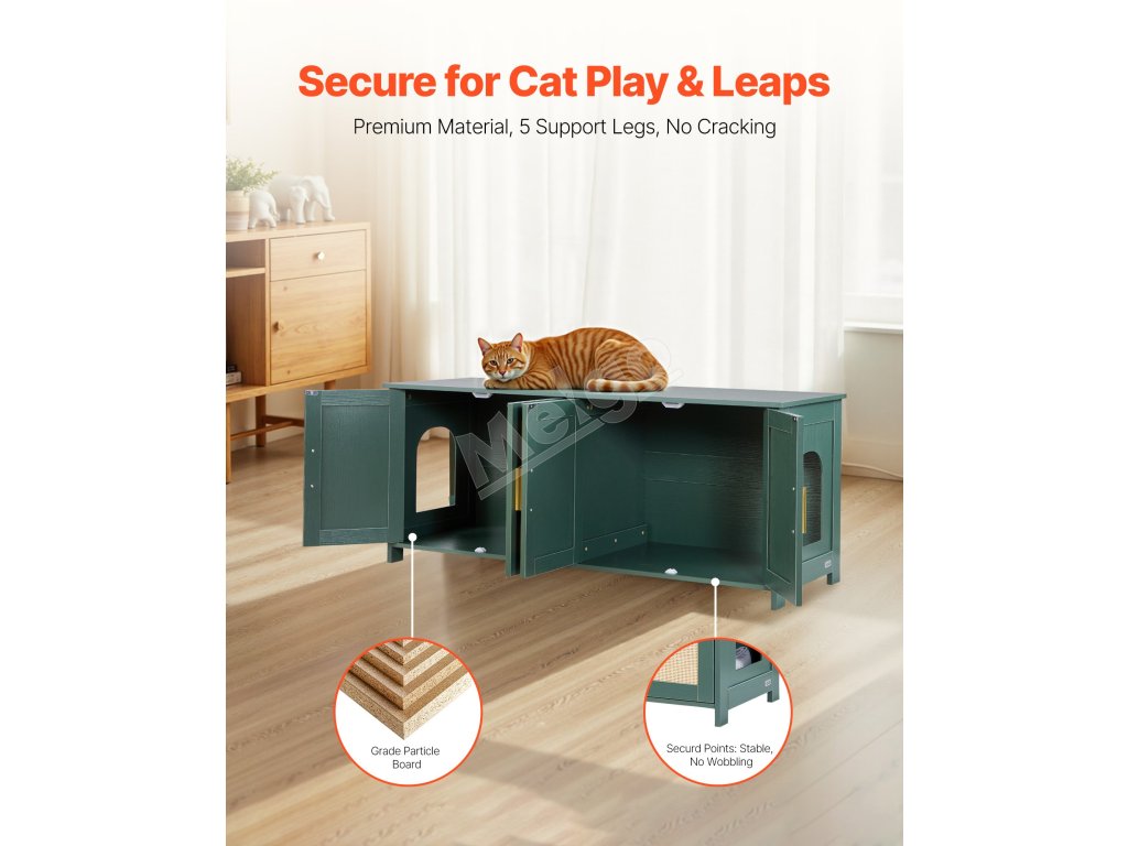 Vďaka maximálnej nosnosti 150 libier/68 kg sa do skrinky na mačacie stelivo ľahko zmestia knihy, kvety, ozdoby a iné dekorácie. S prídavnými podpornými nožičkami je nosnosť 100 lb/45 kg. Nielenže sa do nej uloží veľký box na mačacie stelivo, ale ľahko sa premení aj na útulný domček pre mačky.