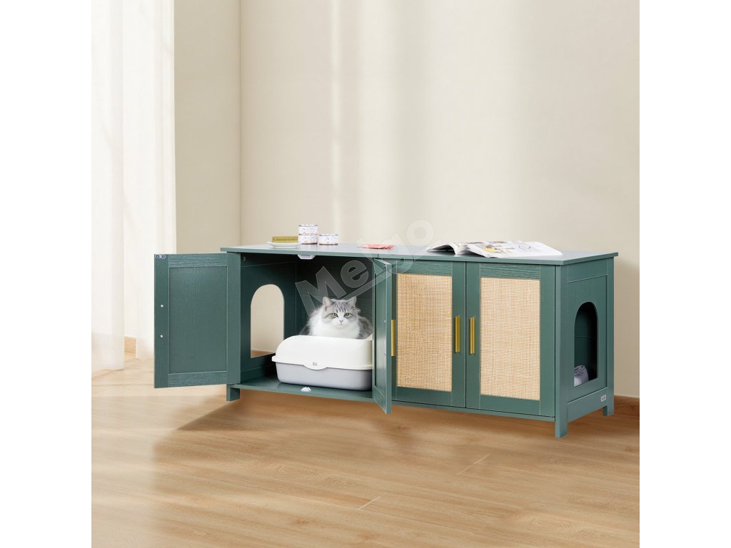 Skrinka na mačací záchod pre 2 mačky ratanové dvierka 47.2×19.7×21.7"