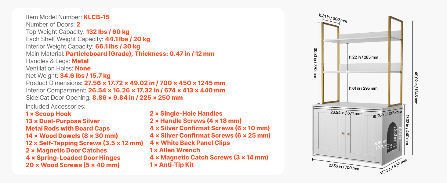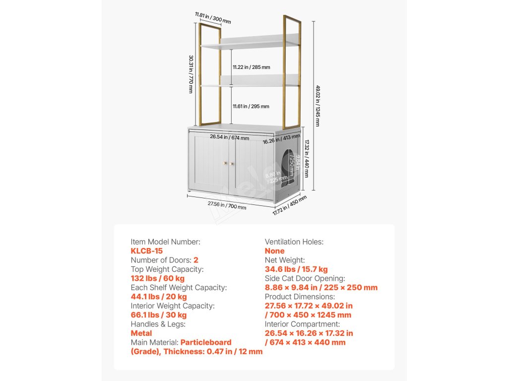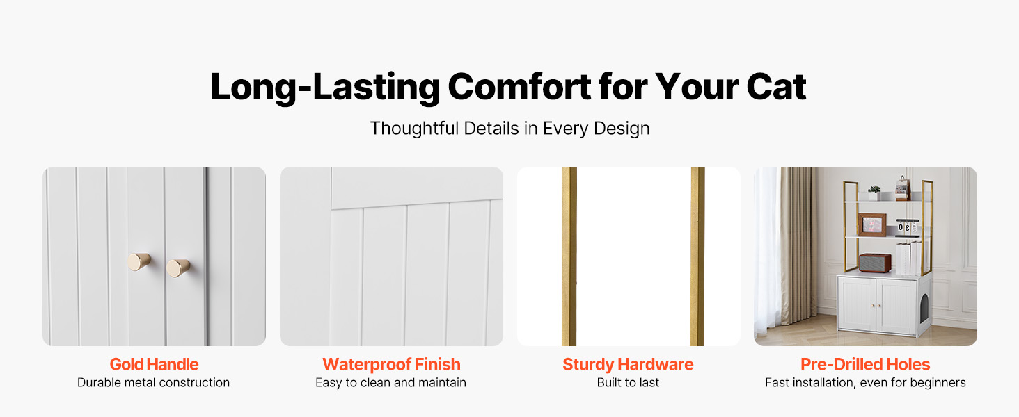Tento drevený nábytok na podstielku je vybavený pevnou a odolnou kovovou rukoväťou a ľahko čistiteľnou vodoodolnou povrchovou úpravou. Dodáva sa s kompletným odolným hardvérovým príslušenstvom a predvŕtanou konštrukciou, ktorá umožňuje jednoduchú inštaláciu aj začiatočníkom.